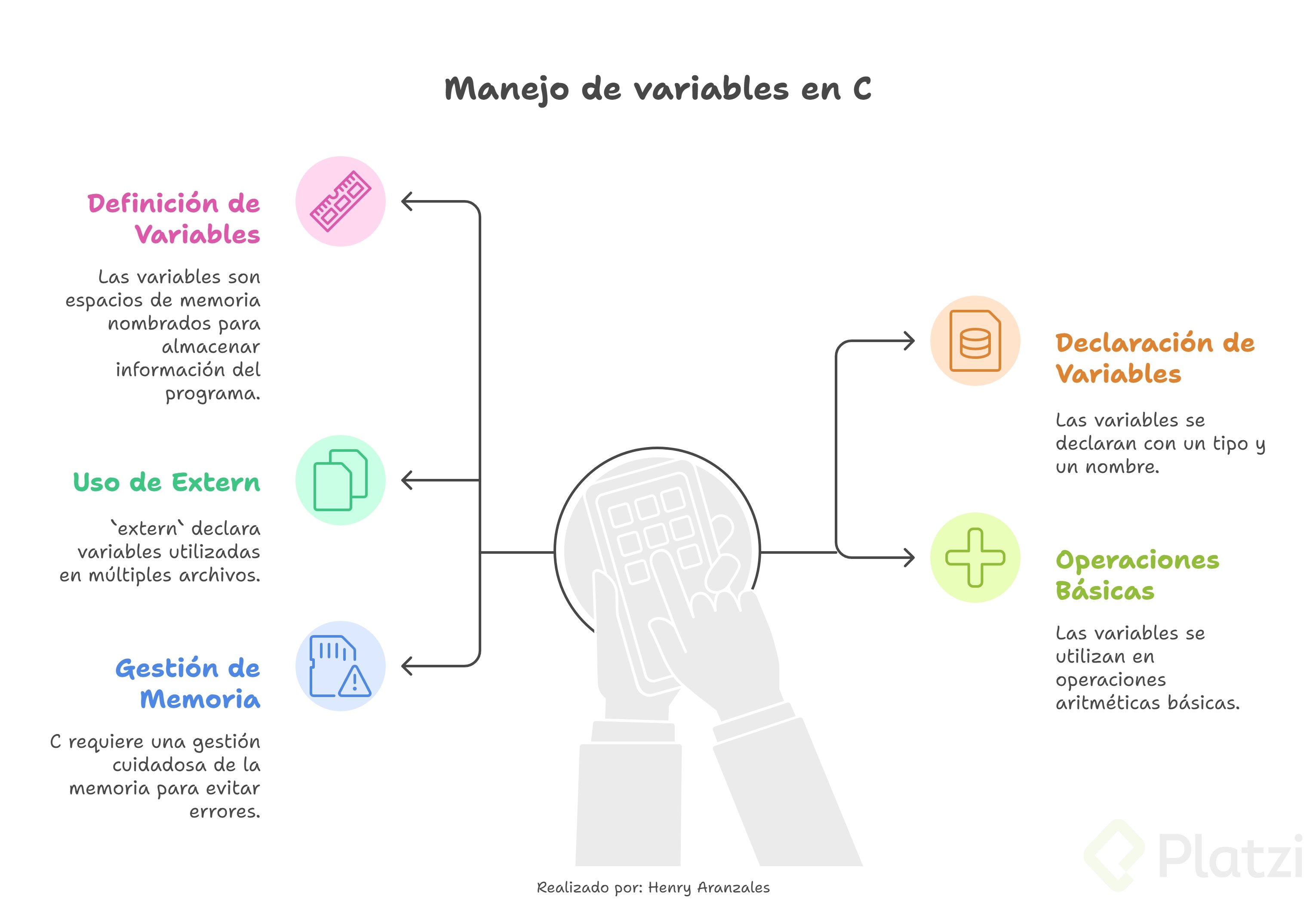 Una variable en el lenguaje C es fundamentalmente el nombre que se asigna a un espacio reservado de la memoria para almacenar información utilizada en un programa. Cada variable tiene un tipo específico que determina el tamaño y la estructura que se reserva en la memoria. Por ejemplo, una variable de tipo char puede contener un byte de memoria, mientras que un unsigned int puede almacenar valores de 0 a aproximadamente 4.294 millones. Entender esto es crucial para gestionar eficientemente la memoria y los recursos de tu aplicación en C.