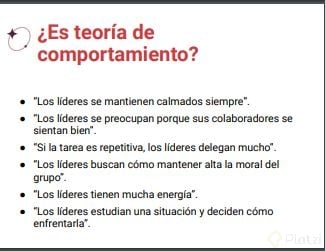 - Teorías del comportamiento: estudian las acciones y conductas de los líderes