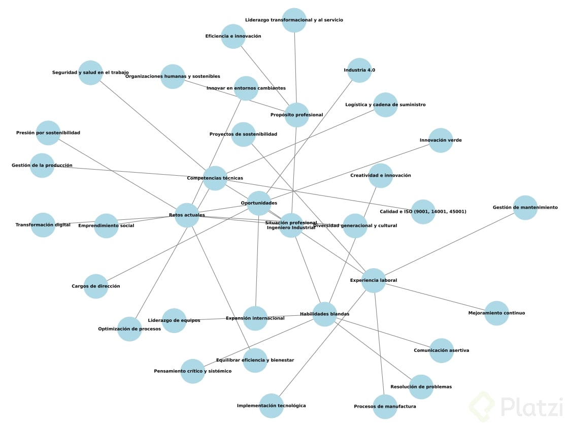 Para practicar, puedes crear un mapa mental centrado en tu situación profesional actual. Comienza identificando todas las características, personas e influencias dentro de tu carrera. Luego, busca establecer las interrelaciones entre ellas, utilizando herramientas digitales como Miro o Murally si prefieres un enfoque digital sobre el papel.