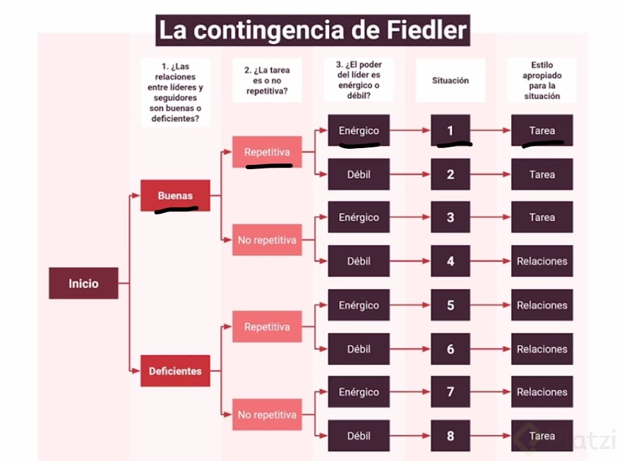 Analiza la situación: Usando el enfoque de Fiedler, evalúa la situación actual considerando tres aspectos: