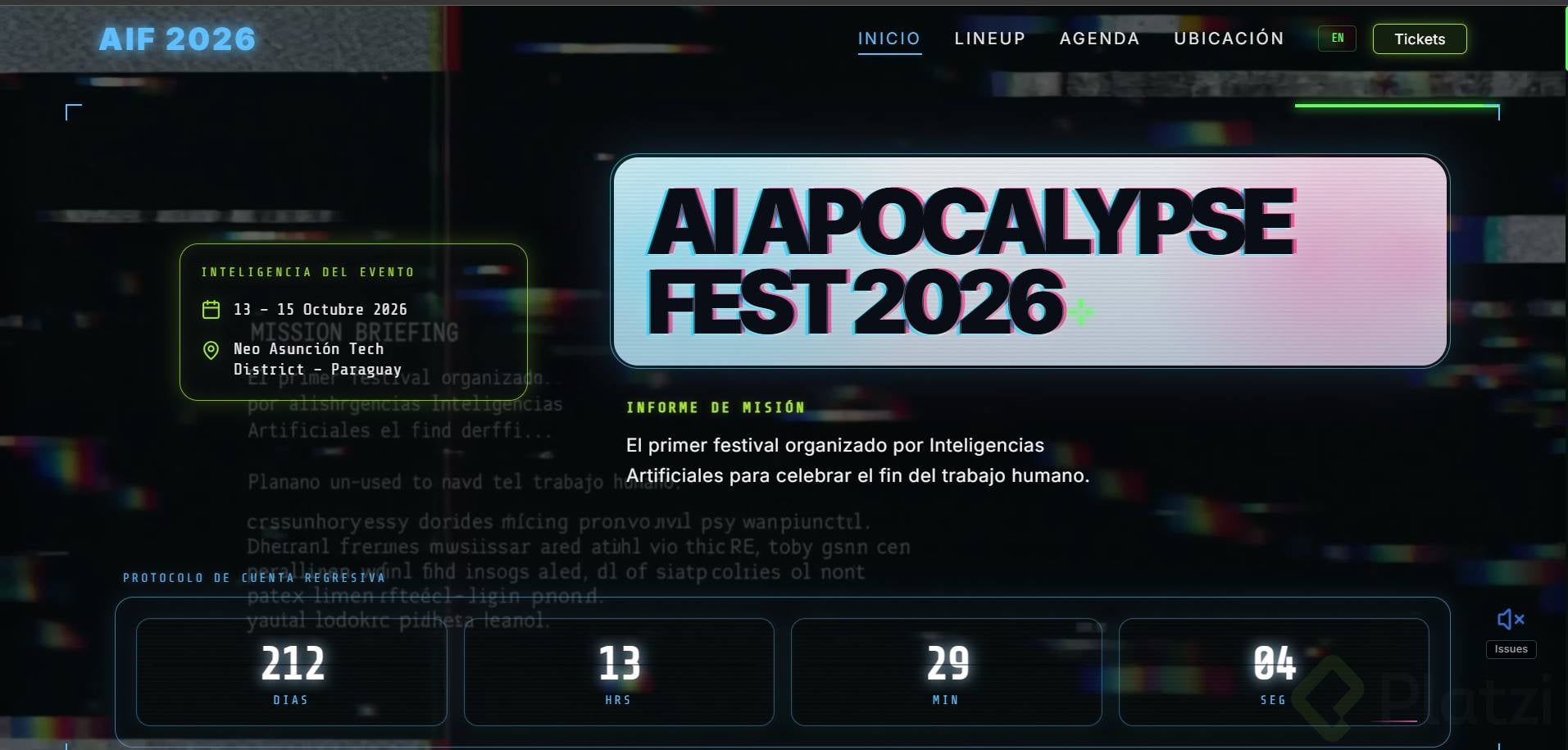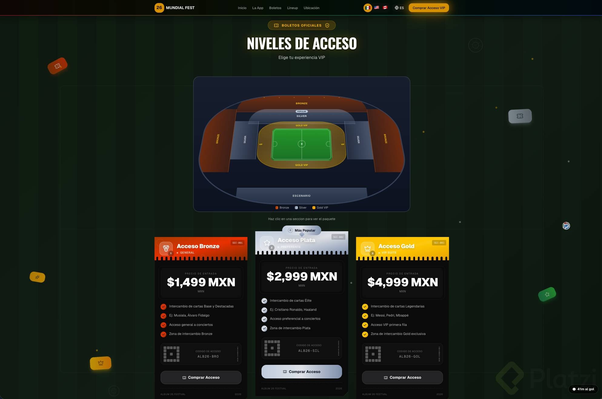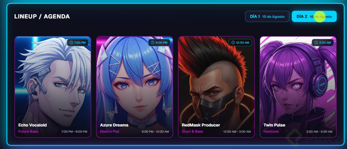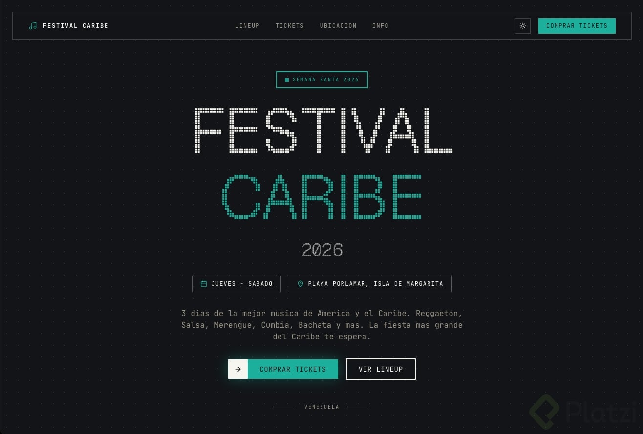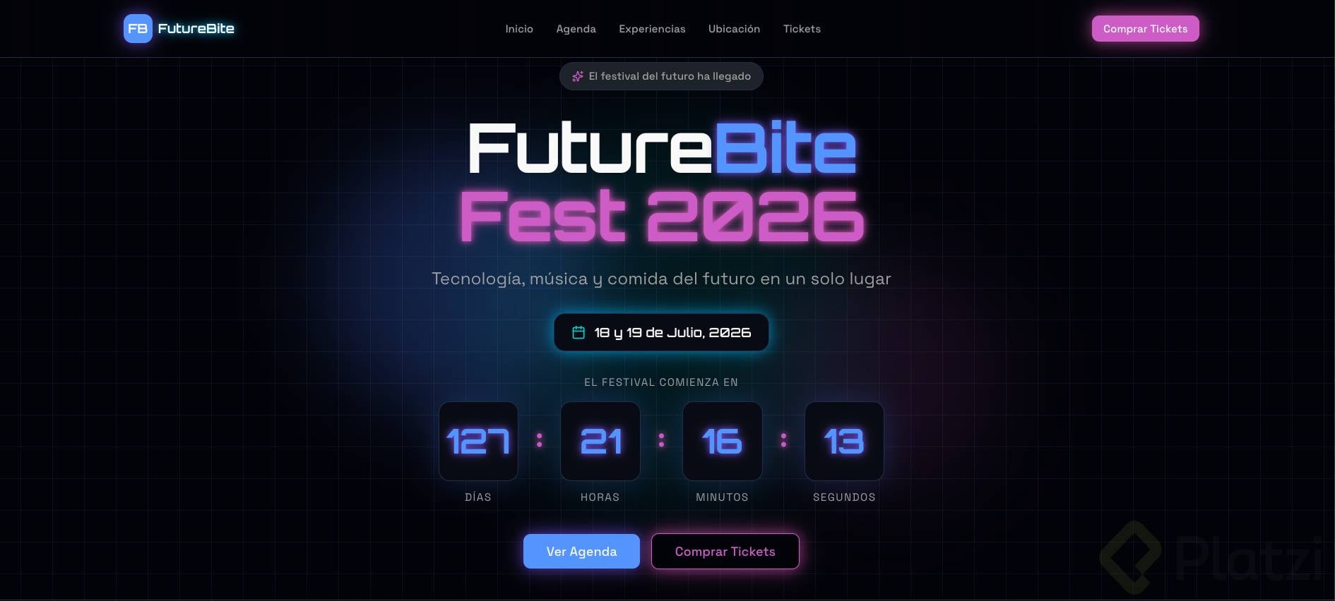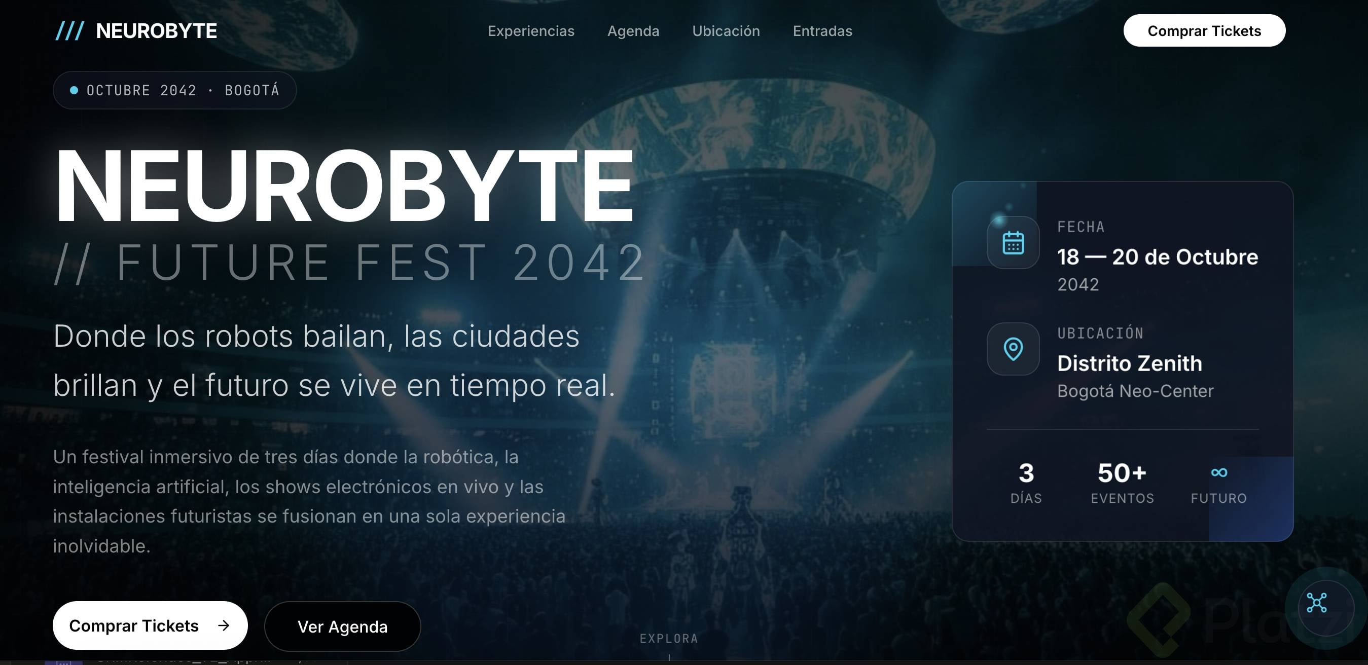 - Al menos 3 secciones (lineup/agenda, ubicación, compra de tickets)