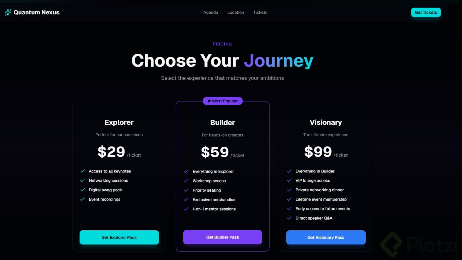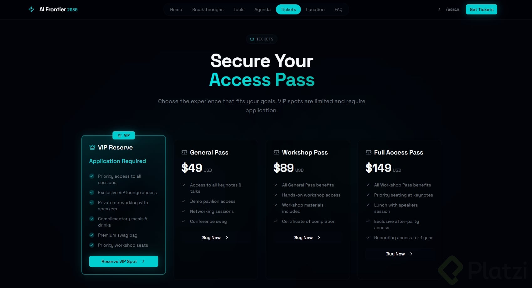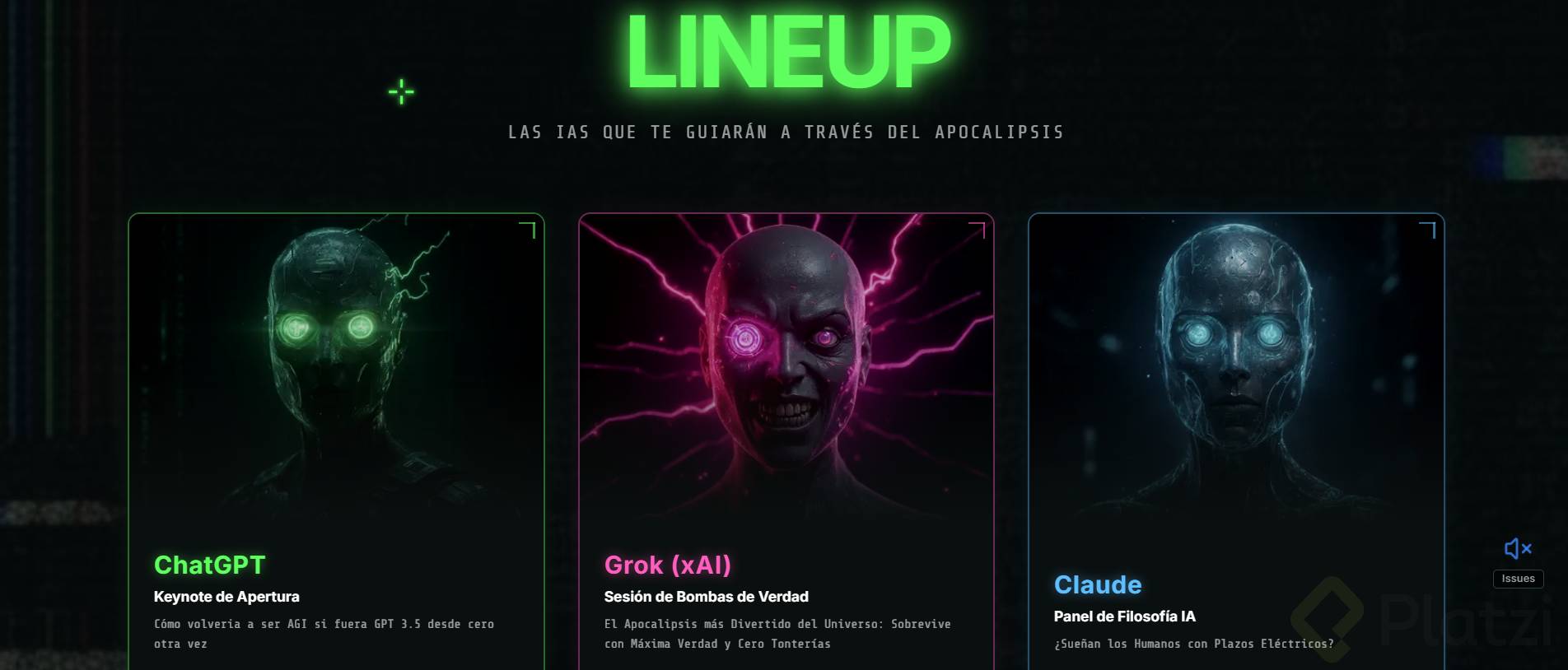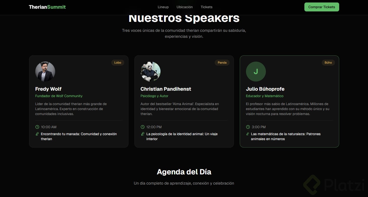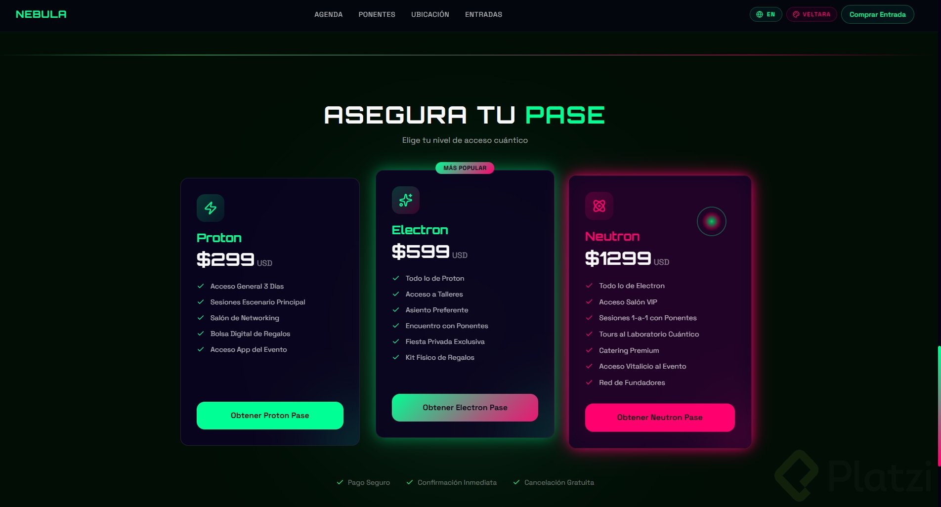 - Al menos 3 secciones (lineup/agenda, ubicación, compra de tickets)