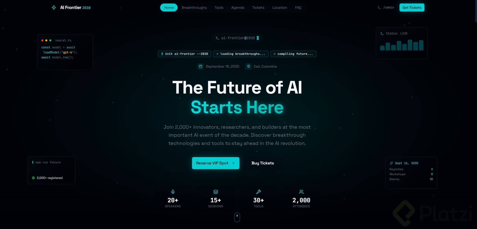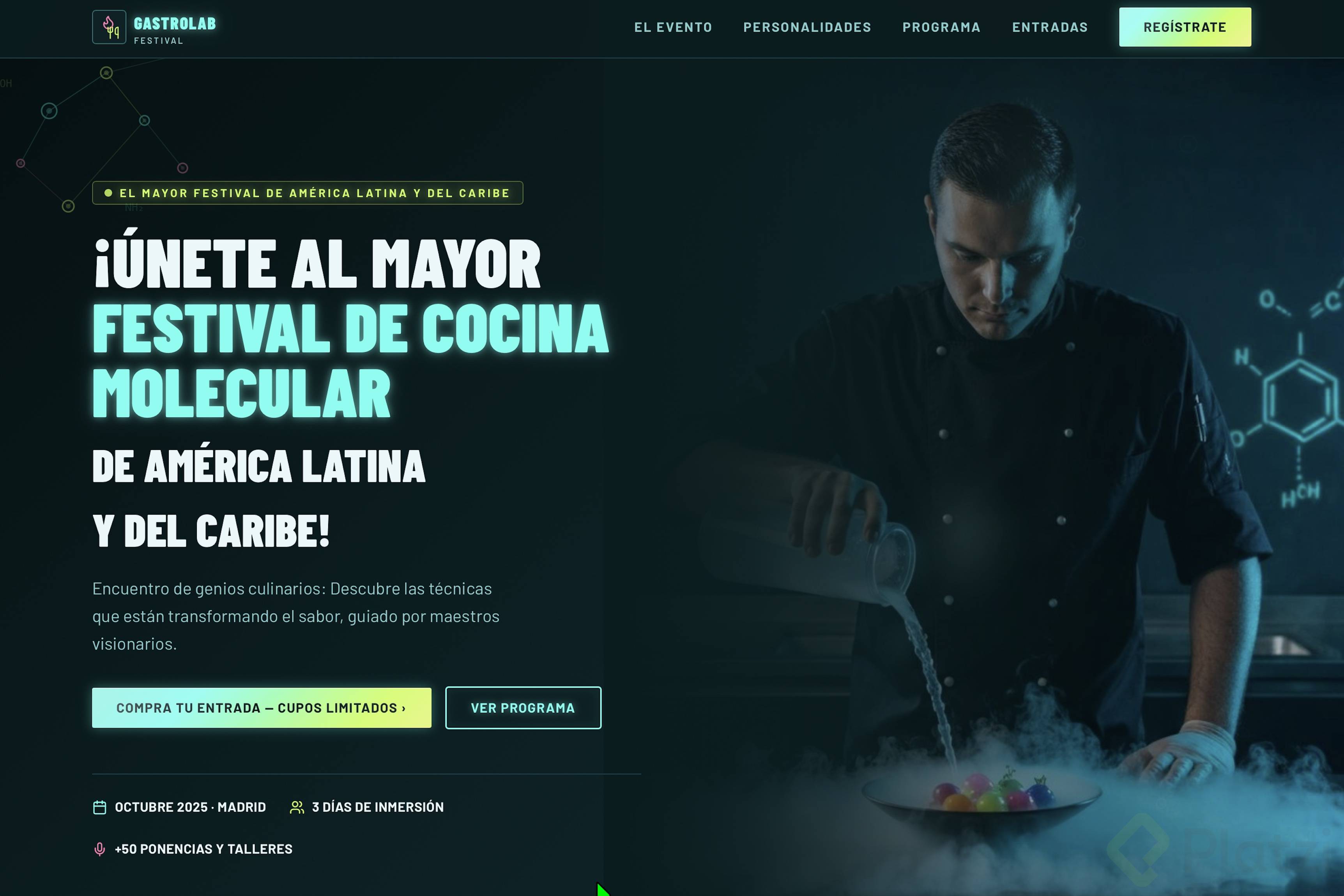 Diseña una landing page para un festival de música, comida o tecnología inventado por ti. Debe incluir: