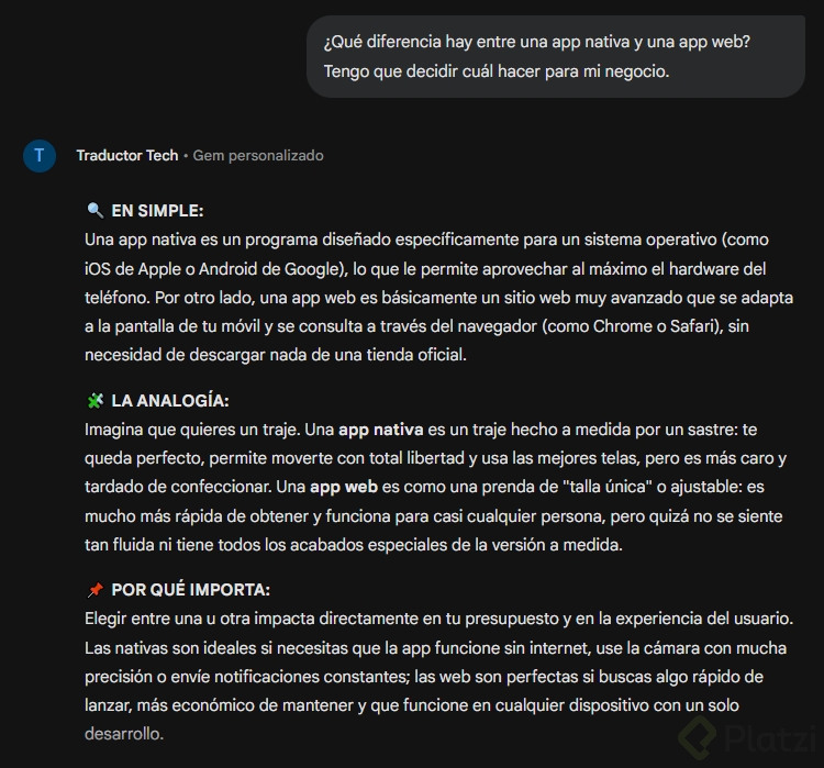Diseña un system prompt completo para un chatbot con un propósito específico. Debe incluir: rol definido, tono, restricciones, formato de respuesta, y al menos 2 ejemplos de interacción esperada. Presenta el prompt y una conversación de prueba mostrando cómo funciona.