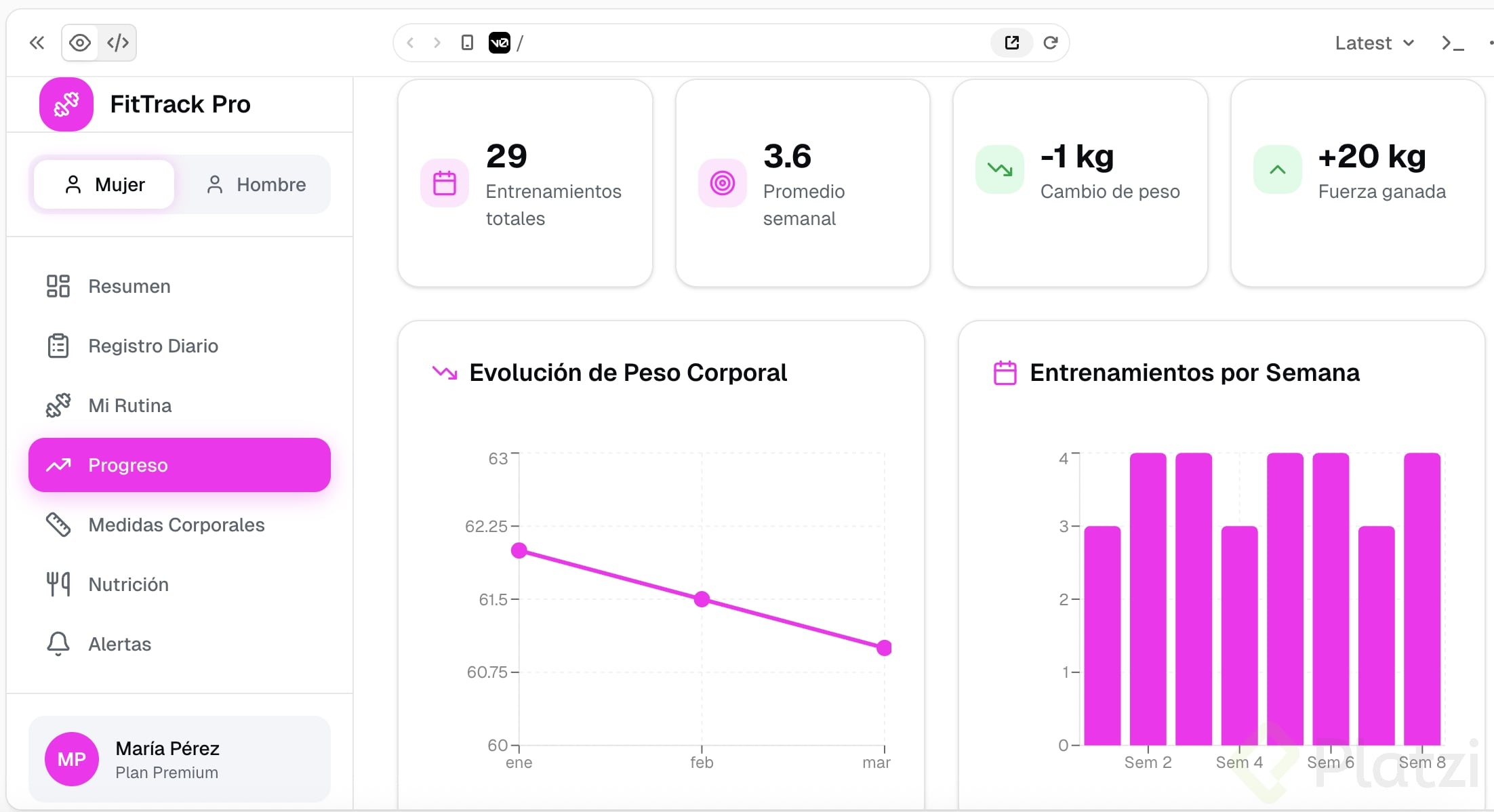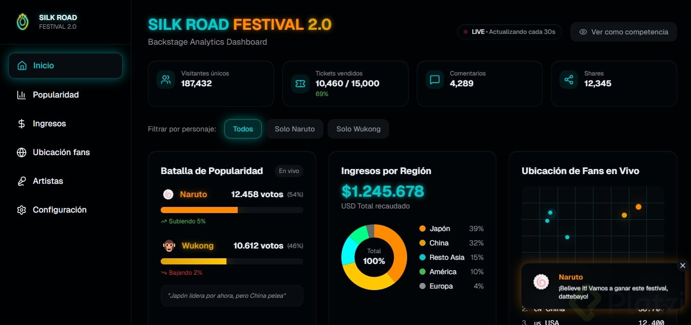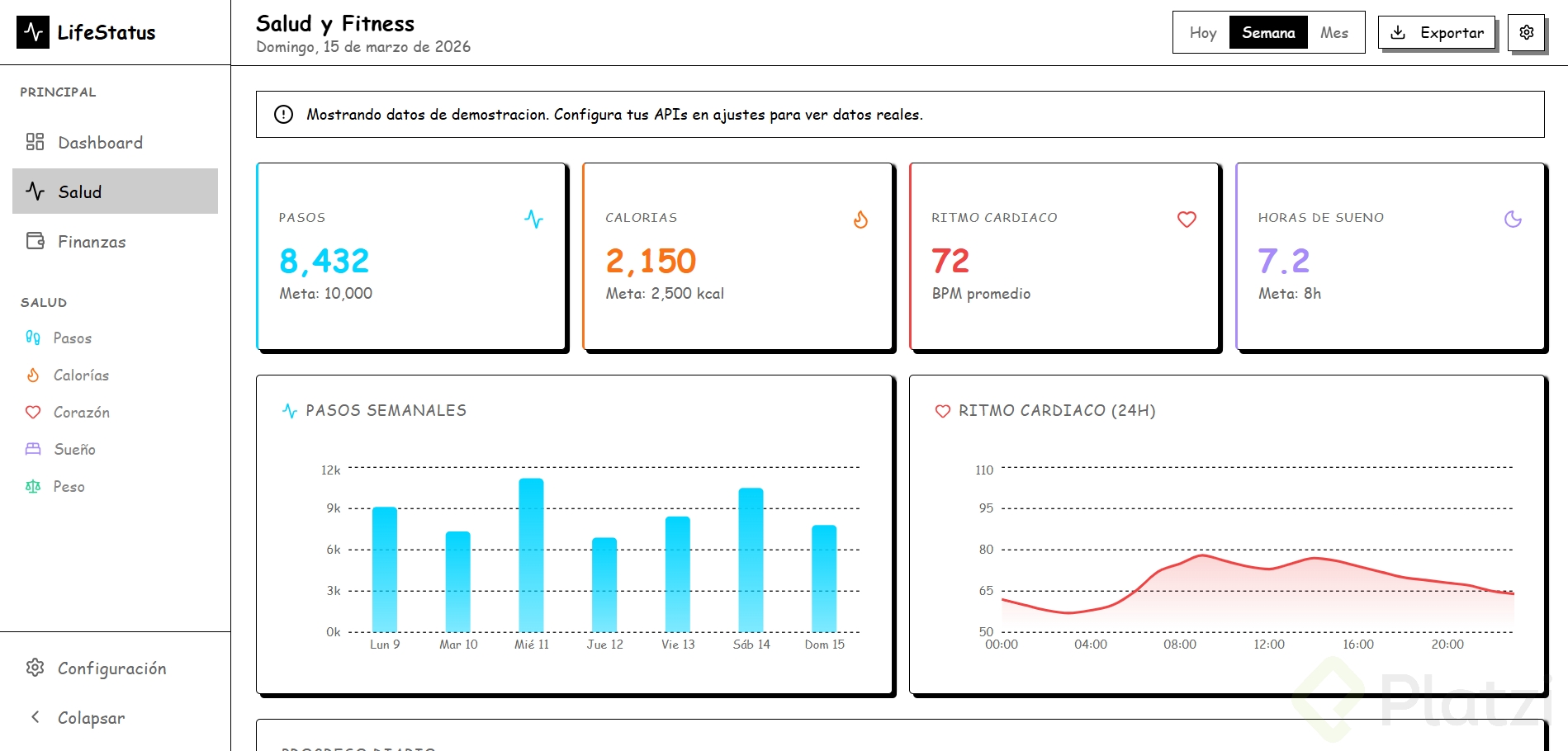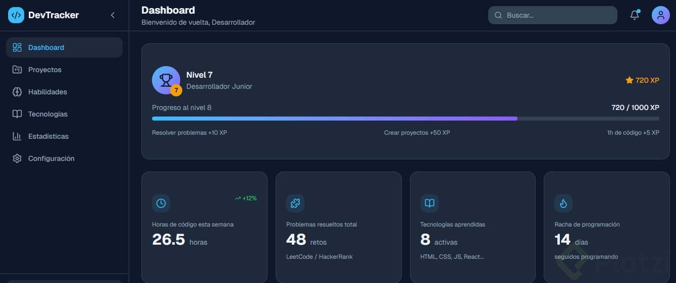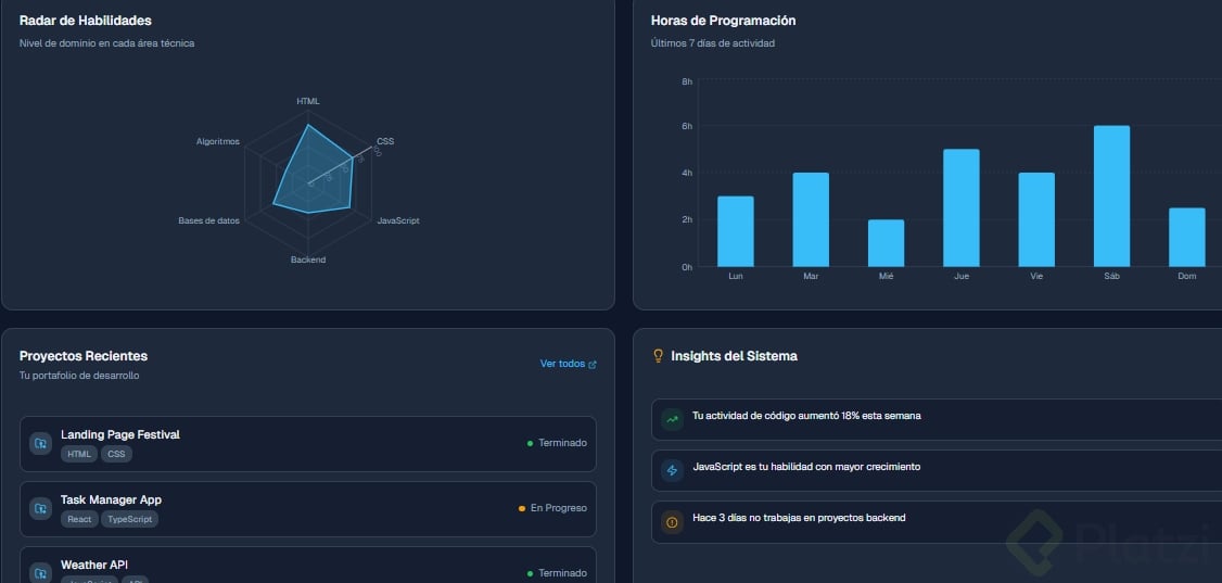 Crea un dashboard (panel visual donde se muestra información resumida, como el tablero de un carro pero con datos) sobre un tema que te apasione: fitness, finanzas, productividad, gaming, etc.