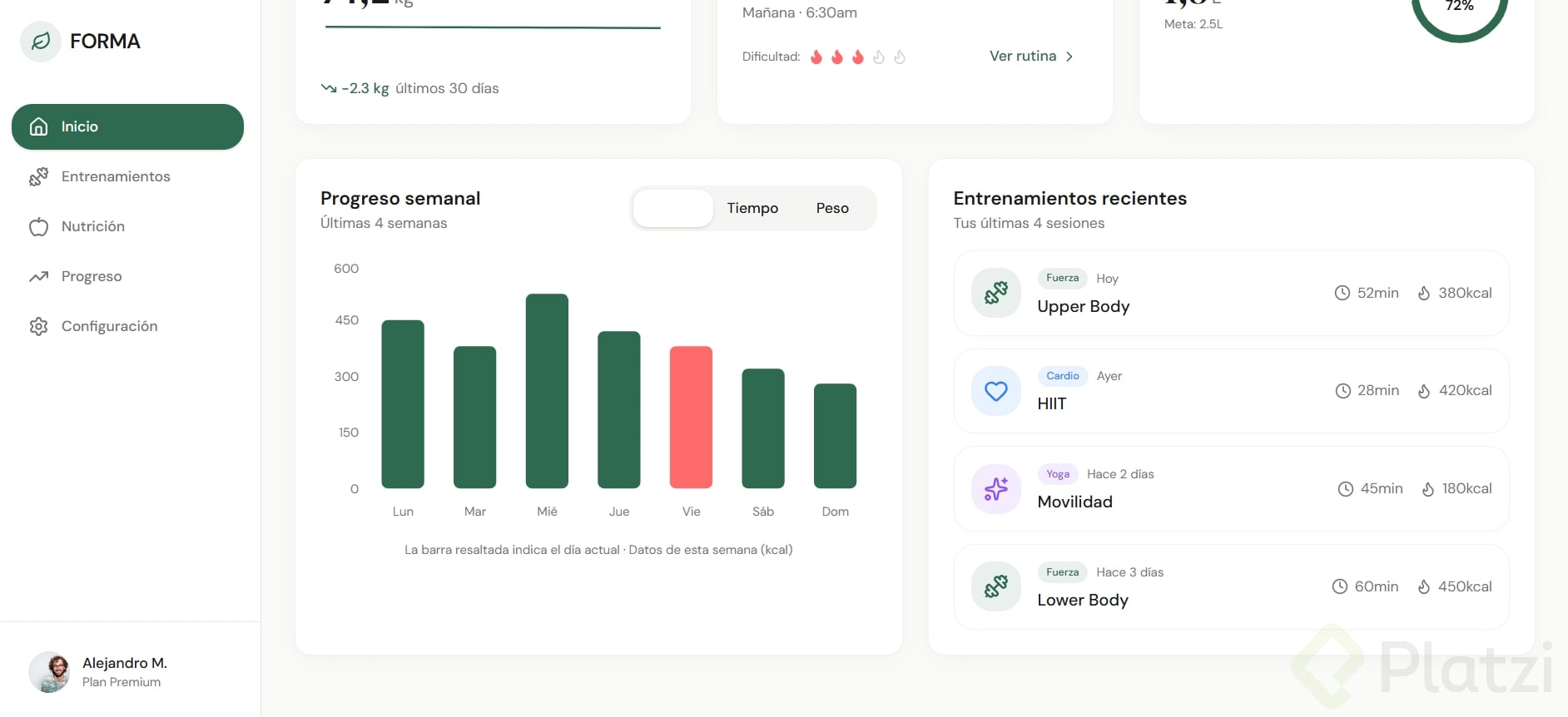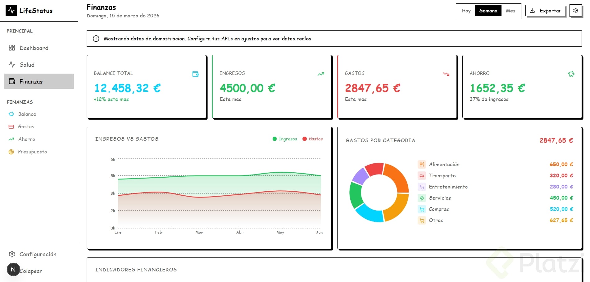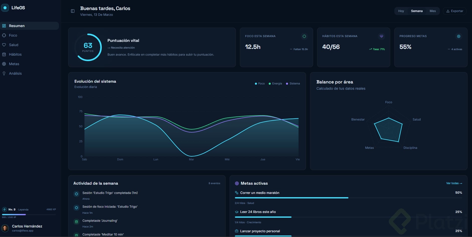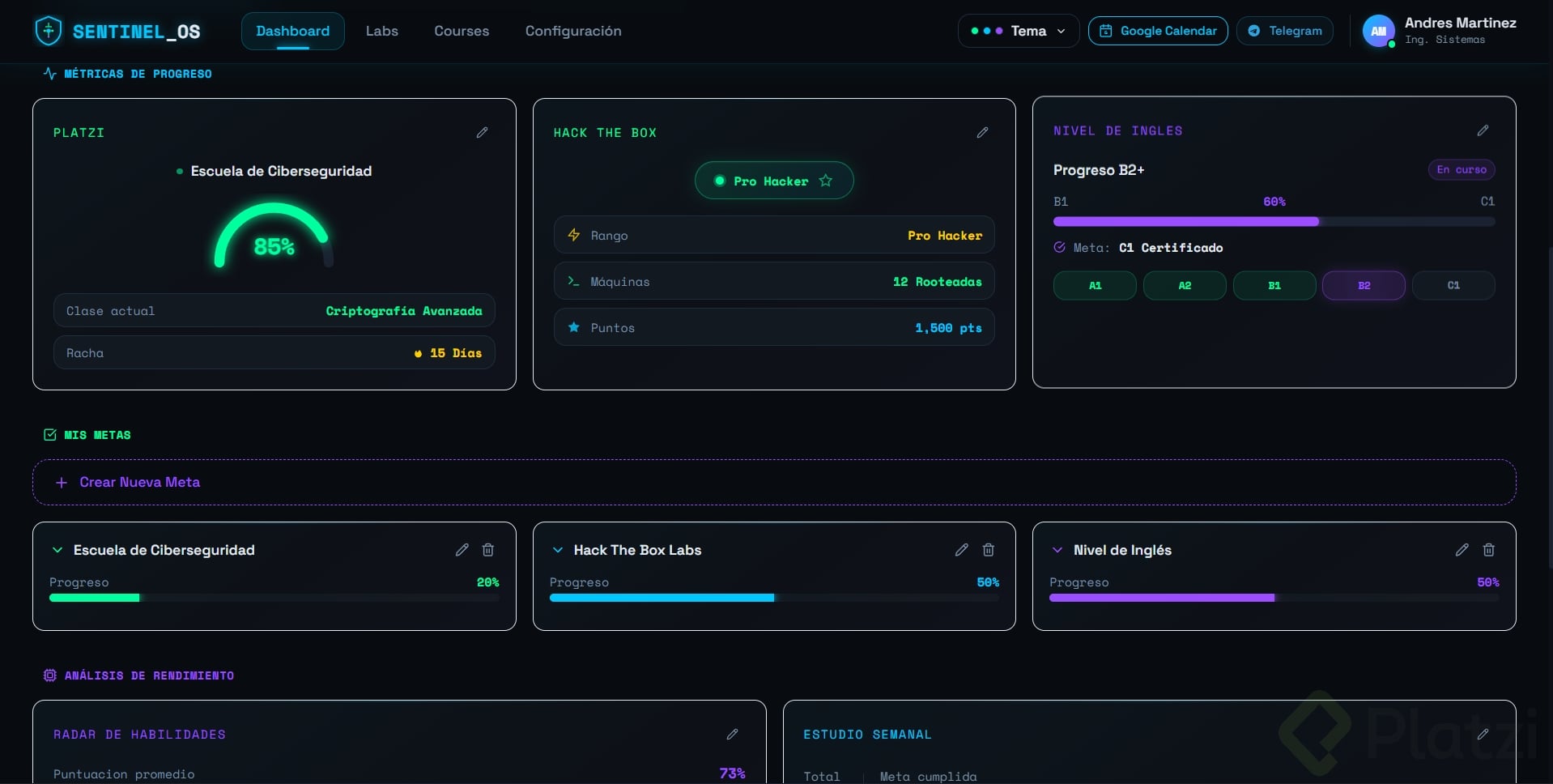 Crea un dashboard (panel visual donde se muestra información resumida, como el tablero de un carro pero con datos) sobre un tema que te apasione: fitness, finanzas, productividad, gaming, etc.