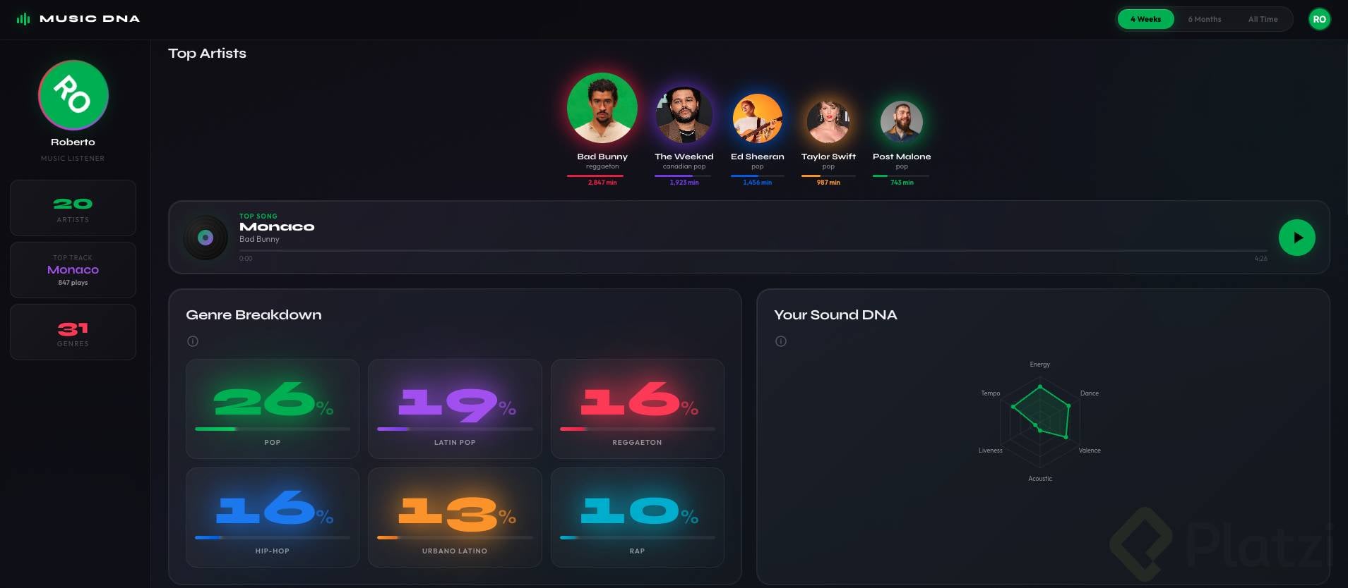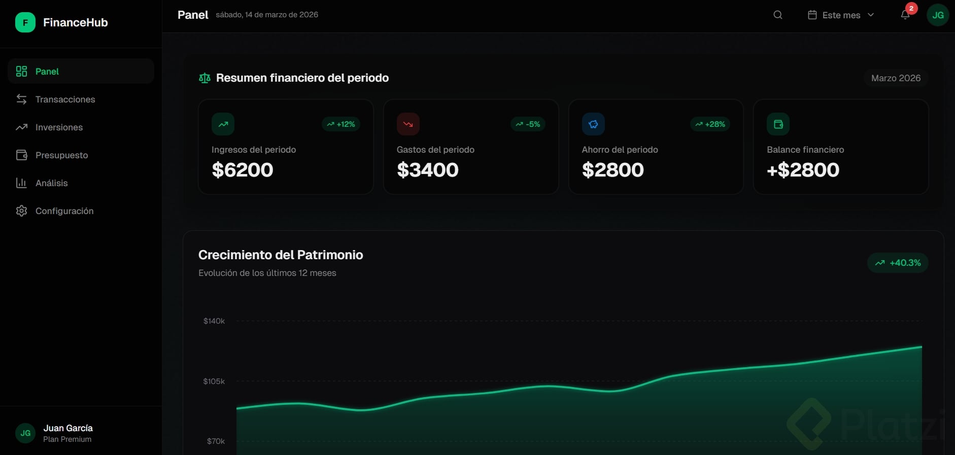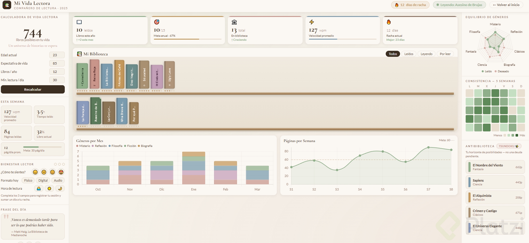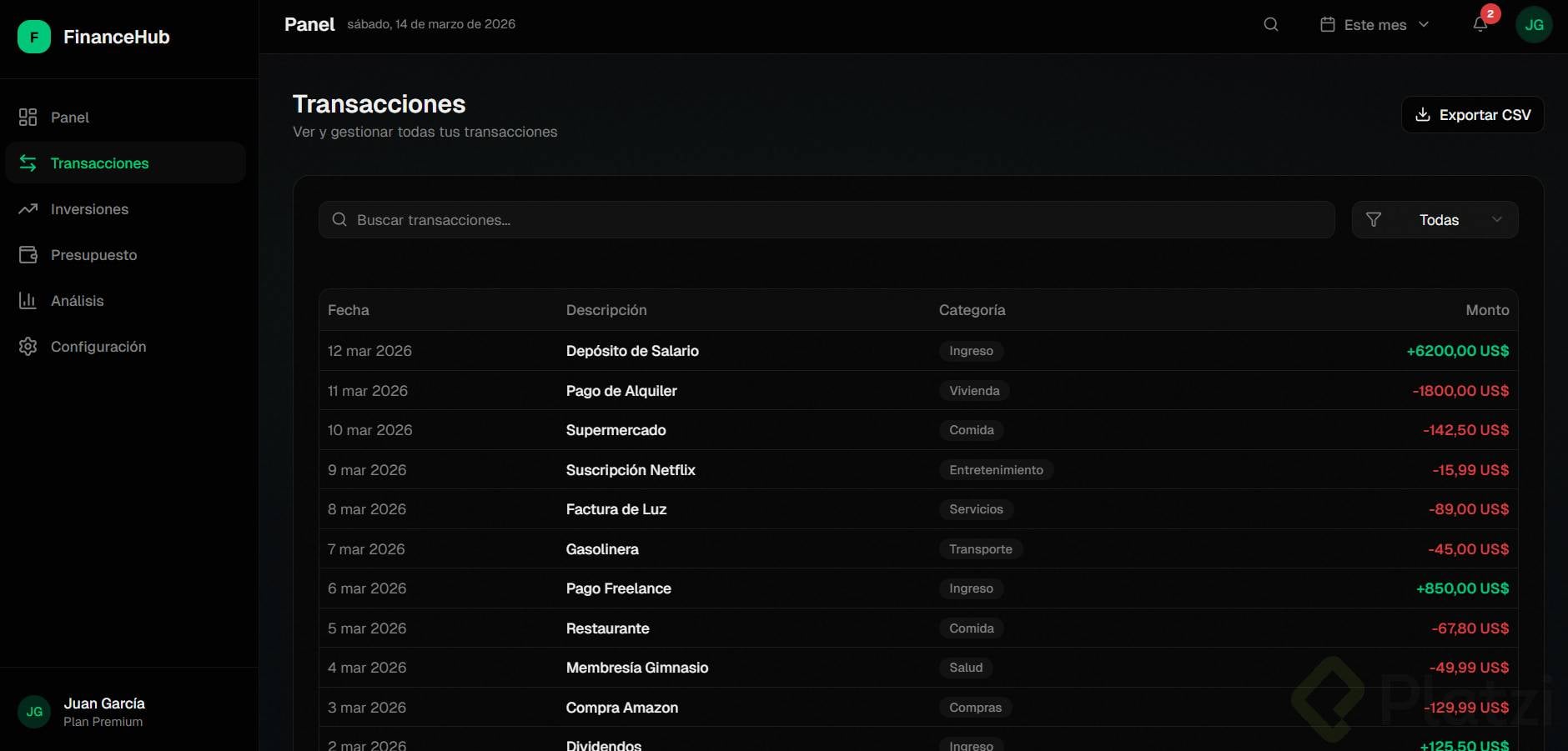 Crea un dashboard (panel visual donde se muestra información resumida, como el tablero de un carro pero con datos) sobre un tema que te apasione: fitness, finanzas, productividad, gaming, etc.