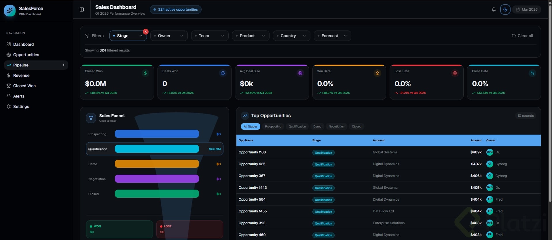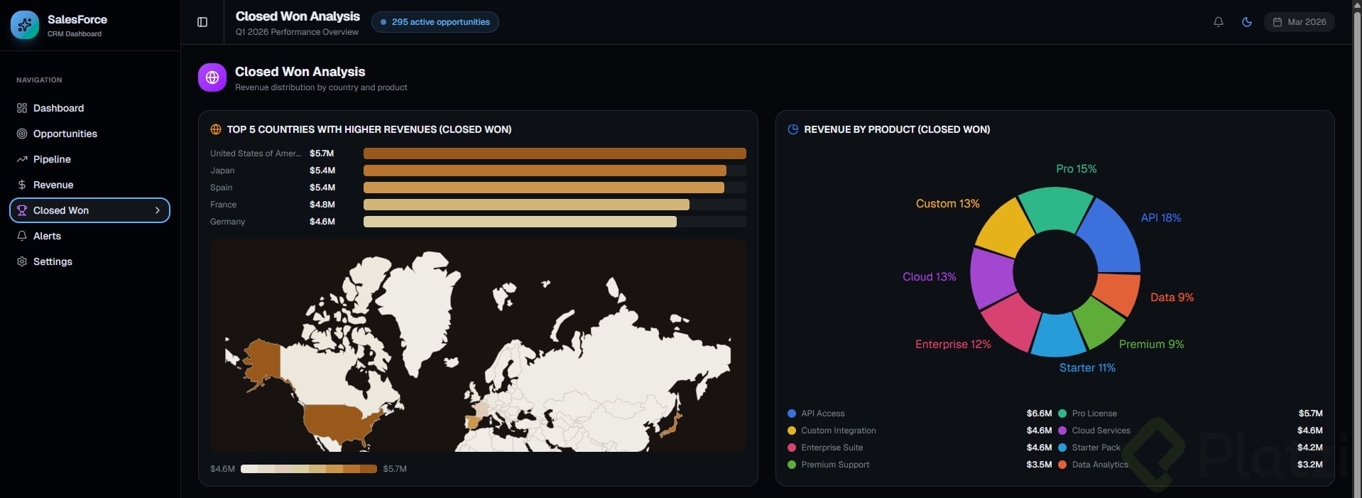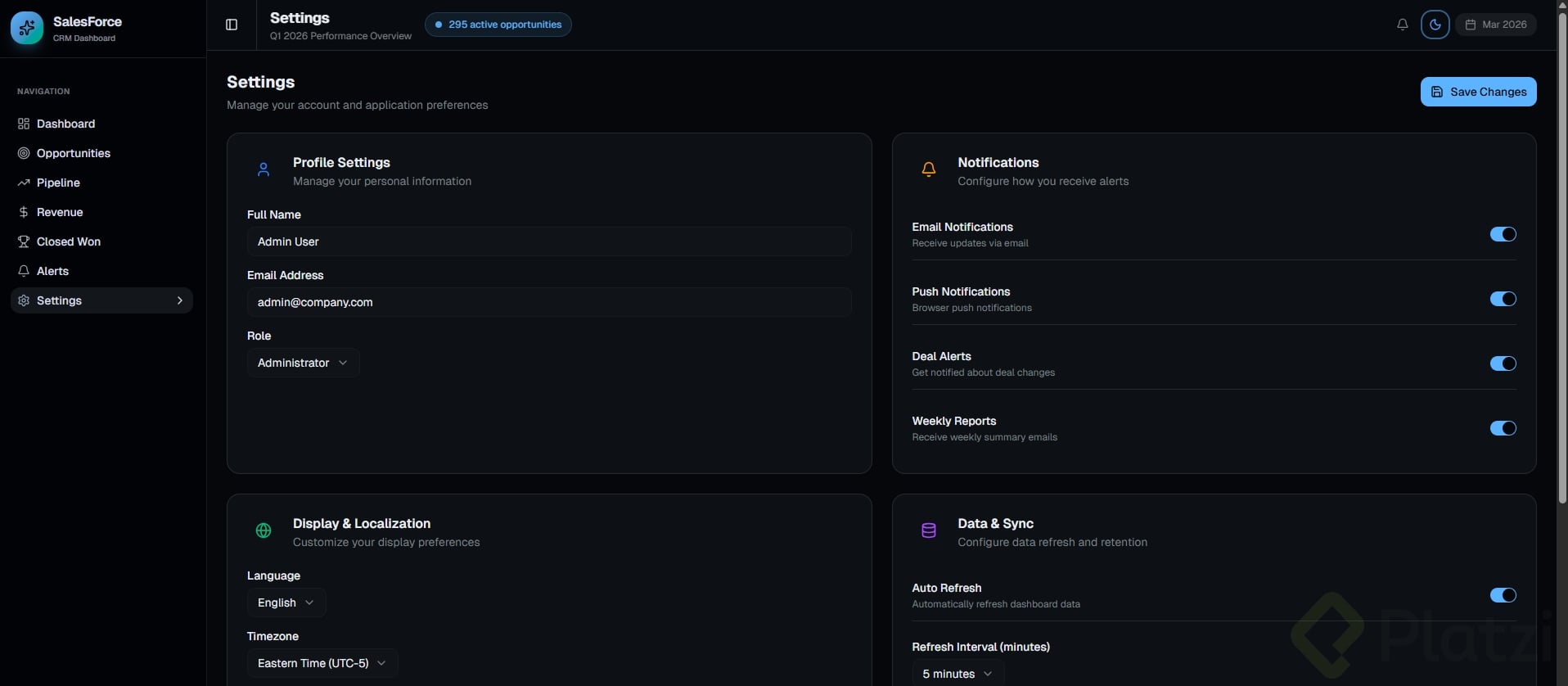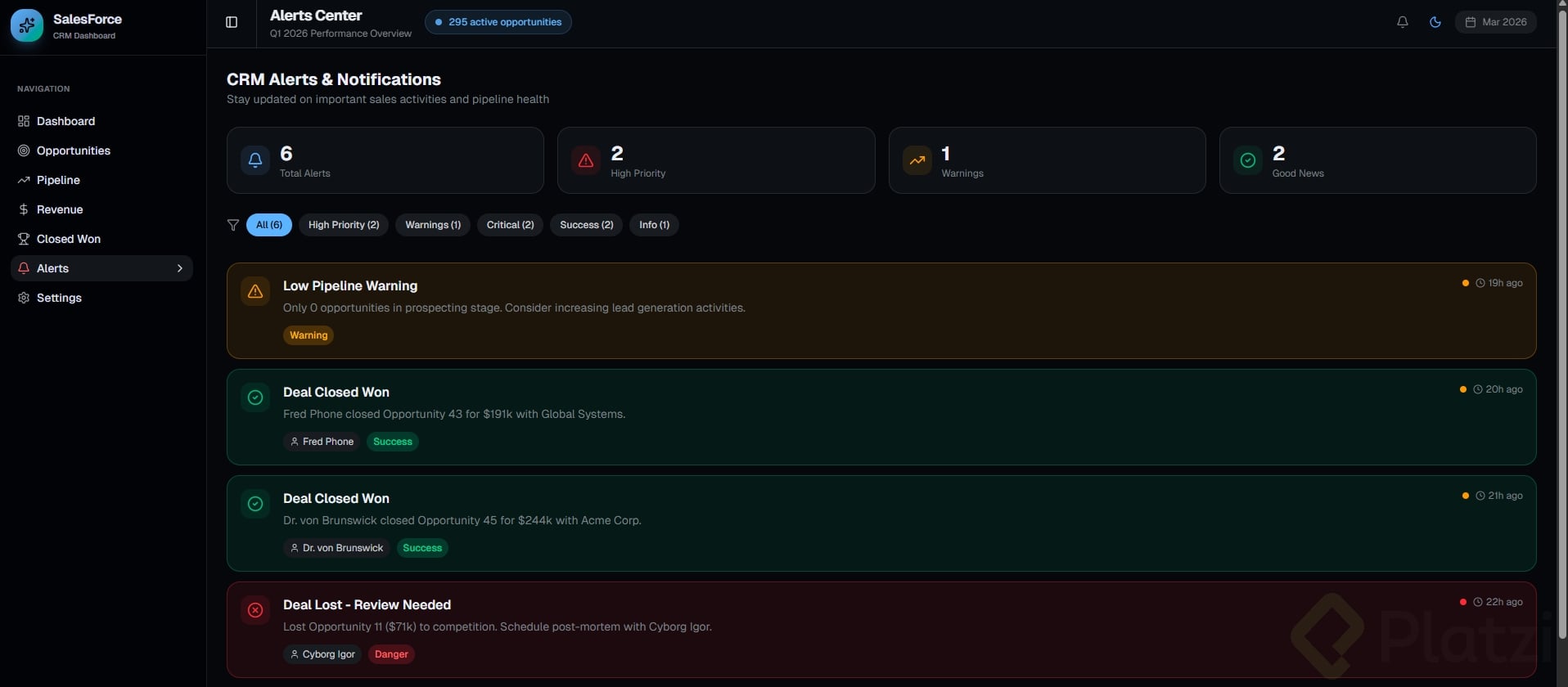 Debe tener al menos 3 tarjetas con datos, un gráfico o visualización, y navegación lateral o superior.