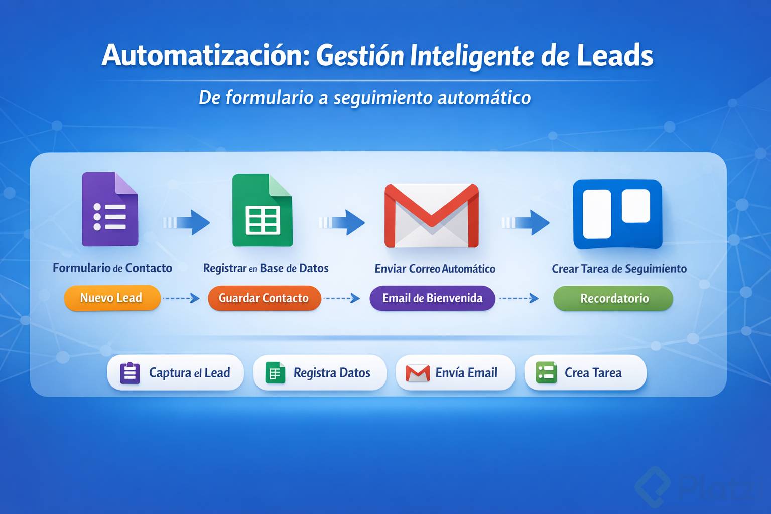 Piensa en dolores comunes: organizar leads que llegan por formulario, sincronizar información entre plataformas, automatizar seguimientos a clientes, consolidar datos de distintas fuentes.