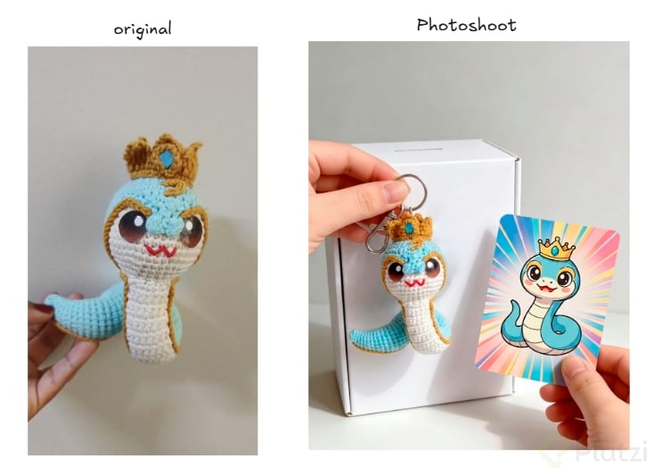 Luego usa herramientas de IA para transformarla en una sesión de fotos profesional. Piensa en iluminación de estudio, fondo limpio, estilo editorial o de catálogo.