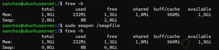 sudo swapon /swapfile