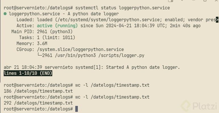Para demostrar el proceso de creación de un demonio, vamos a implementar un simple script de Python que funcione como un logger básico, registrando la fecha actual cada segundo en un archivo.