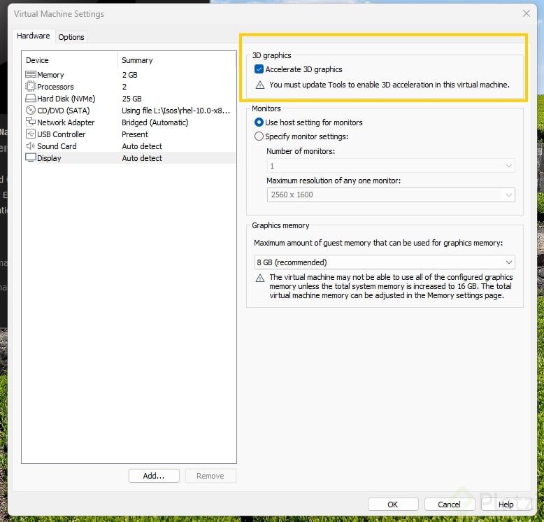 - Memoria RAM: RHEL 8.6 requiere al menos 4 GB de RAM, pero es recomendable asignarle 8 GB para un rendimiento óptimo.