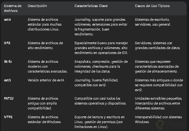 - FAT32: Permite manejar archivos y particiones de mayor tamaño comparado con FAT, ofreciendo compatibilidad entre Linux y Windows.