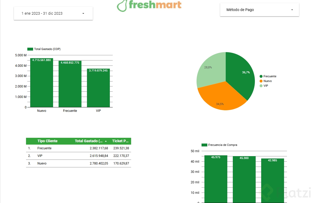 La analítica de clientes es una herramienta poderosa que permite a las empresas comprender mejor a quienes compran sus productos o servicios. Mediante la combinación de datos de ventas con información de clientes, los negocios pueden descubrir patrones de compra, identificar a sus mejores clientes y tomar decisiones estratégicas basadas en evidencia. En este artículo, exploraremos cómo crear un dashboard de análisis de clientes en Looker Studio para la empresa Freshmark, permitiéndoles obtener insights valiosos sobre su base de clientes.
