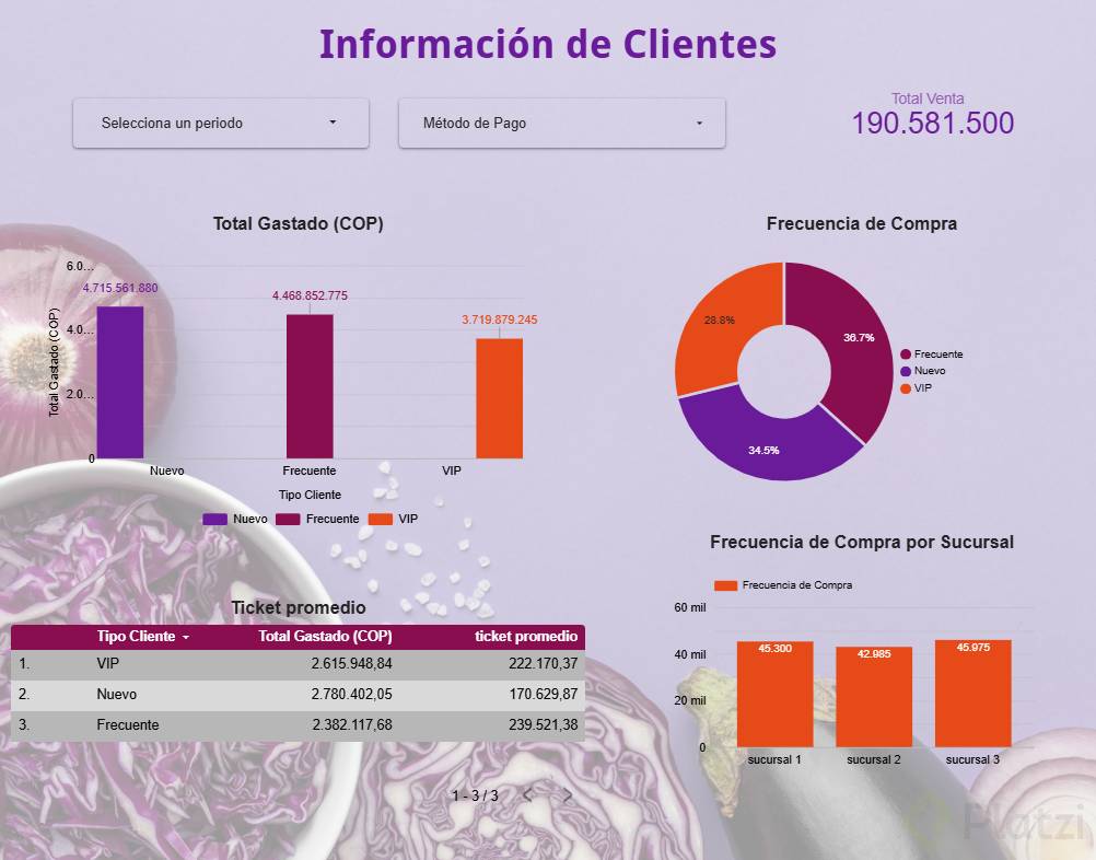 - Categorización del tipo de cliente (nuevo, frecuente, VIP)