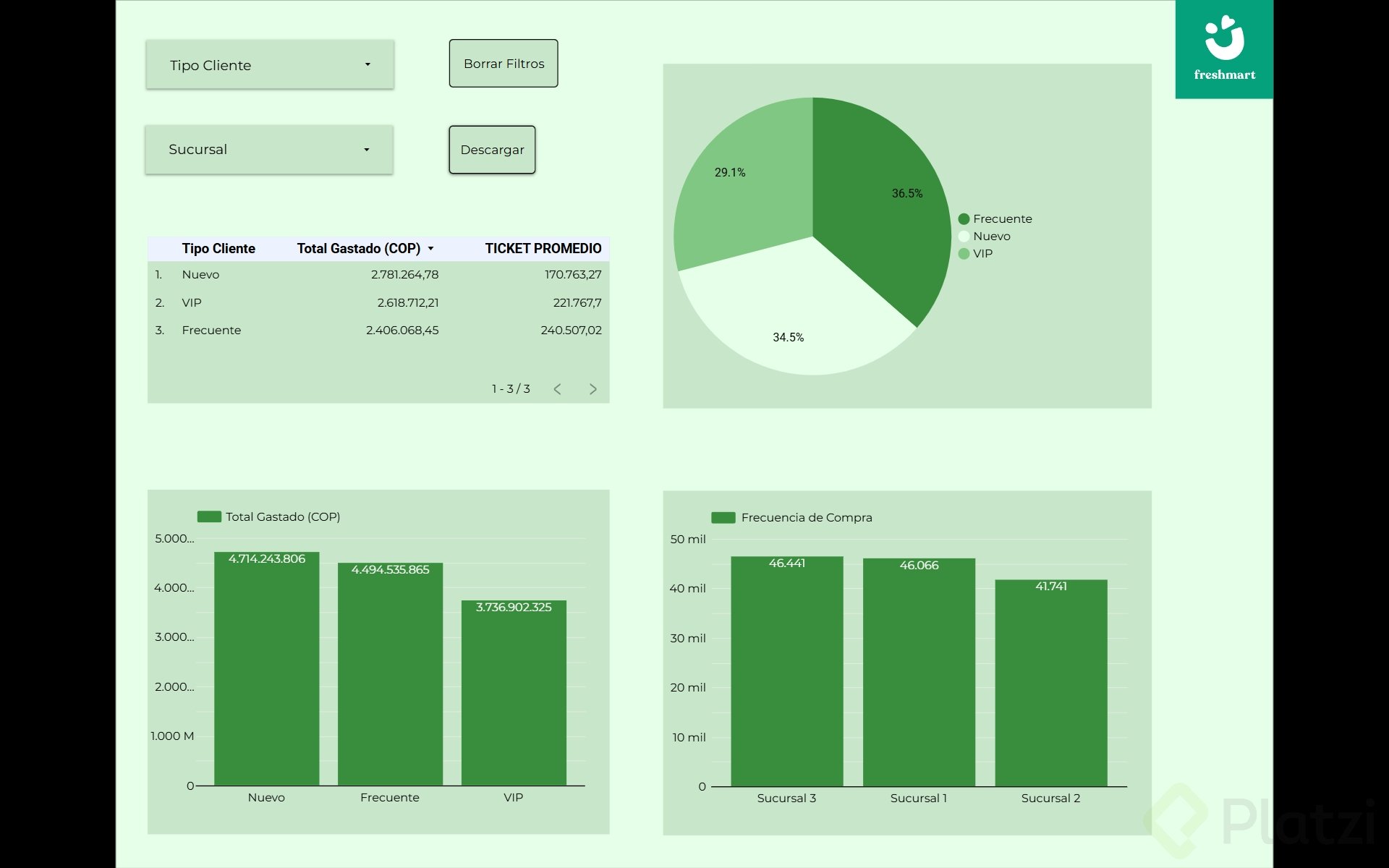 Filtros y Controles en Dashboards para Gerentes de Freshmark