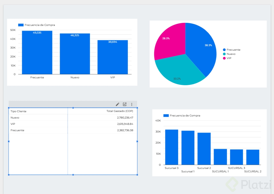 Una vez preparados los datos, es momento de crear visualizaciones que respondan preguntas específicas del negocio: