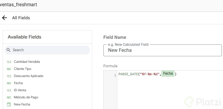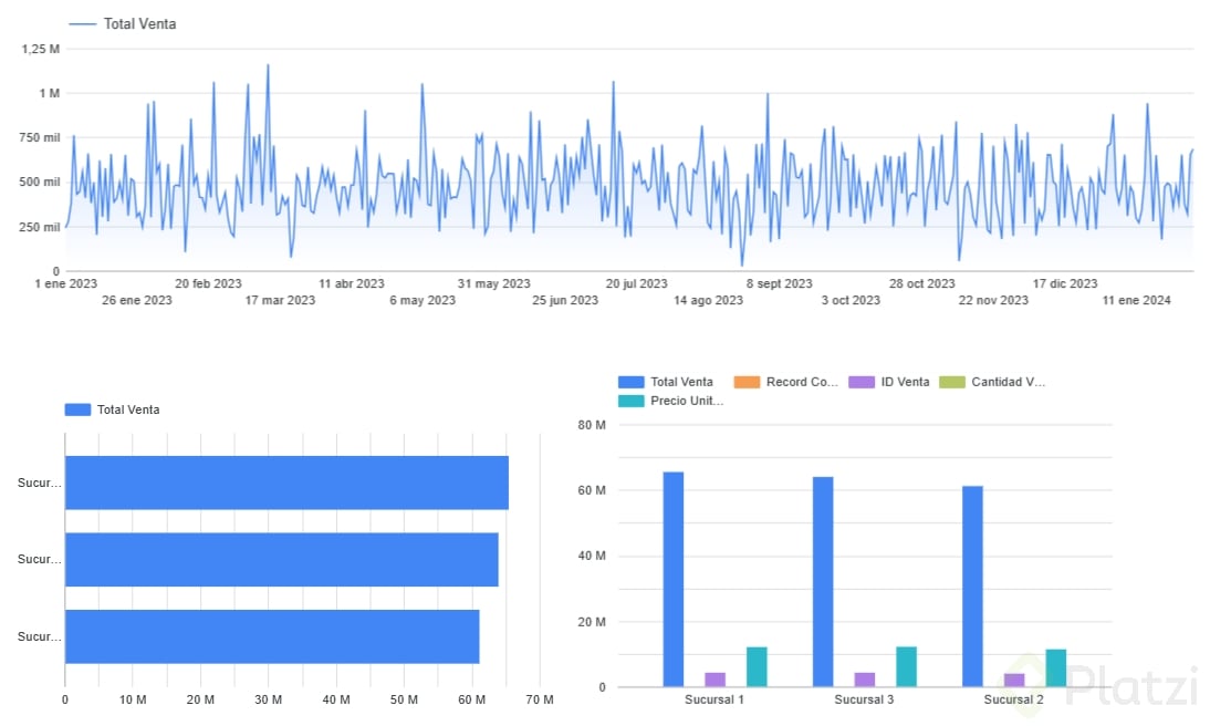 - Cambia la métrica predeterminada arrastrando "total venta" como métrica, asegurando representar ingresos.