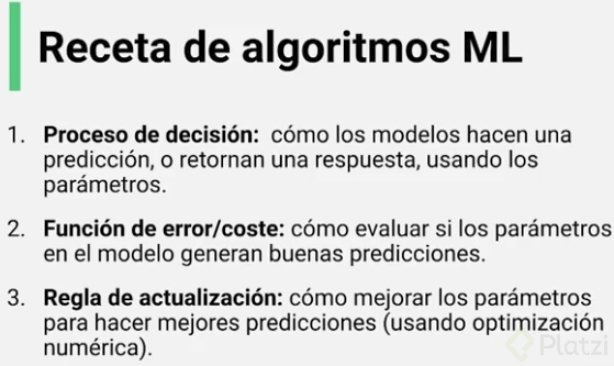 Regla de actualización: Aquí es donde reside la verdadera magia del aprendizaje. Una vez que el modelo realiza una predicción, la regla de actualización interviene para mejorar los parámetros, asegurando que con cada iteración, las predicciones sean más precisas. Este proceso de retroalimentación es esencial para refinar el modelo y alcanzar un rendimiento óptimo.
