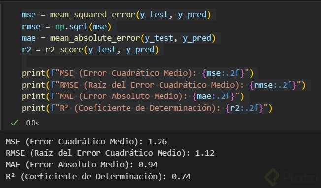 Las métricas proporcionan señales claras acerca de qué tan adecuado es un modelo. En este caso específico: