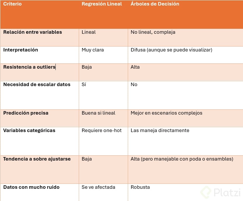 Cuándo elegir regresión lineal vs árboles de decisión