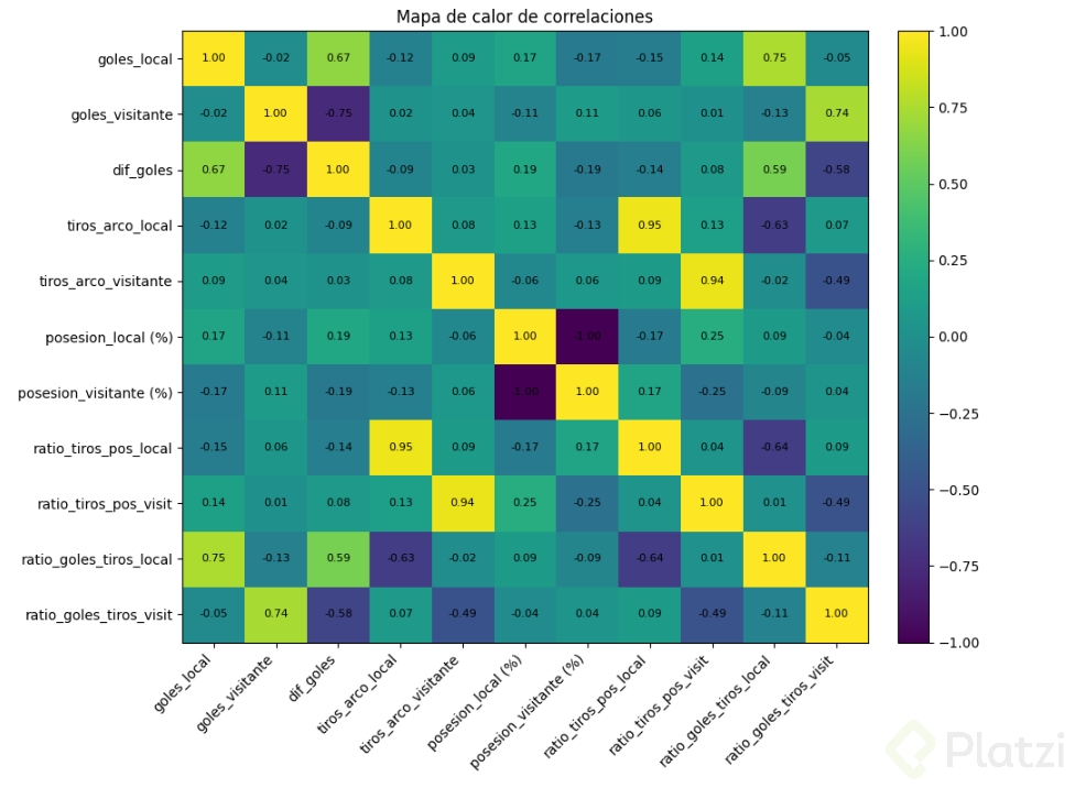 En este ejercicio, nuevamente resaltaron por relevancia la posesión local, el ratio de tiros respecto a posesión local y los tiros al arco local.