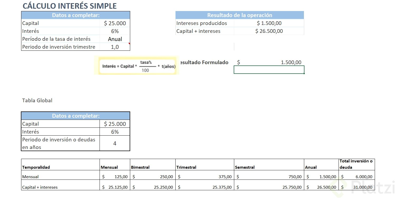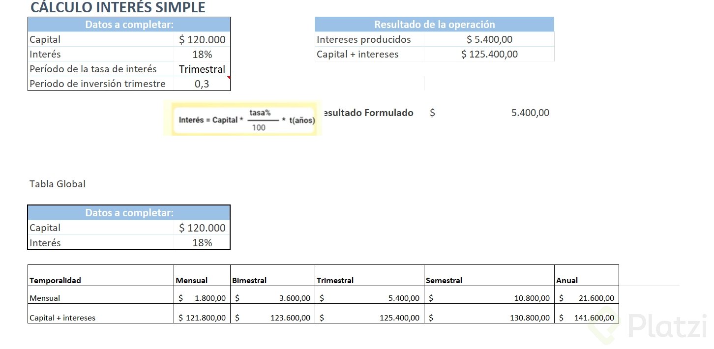 Cálculo del Interés Simple con Ejercicios Prácticos en Excel