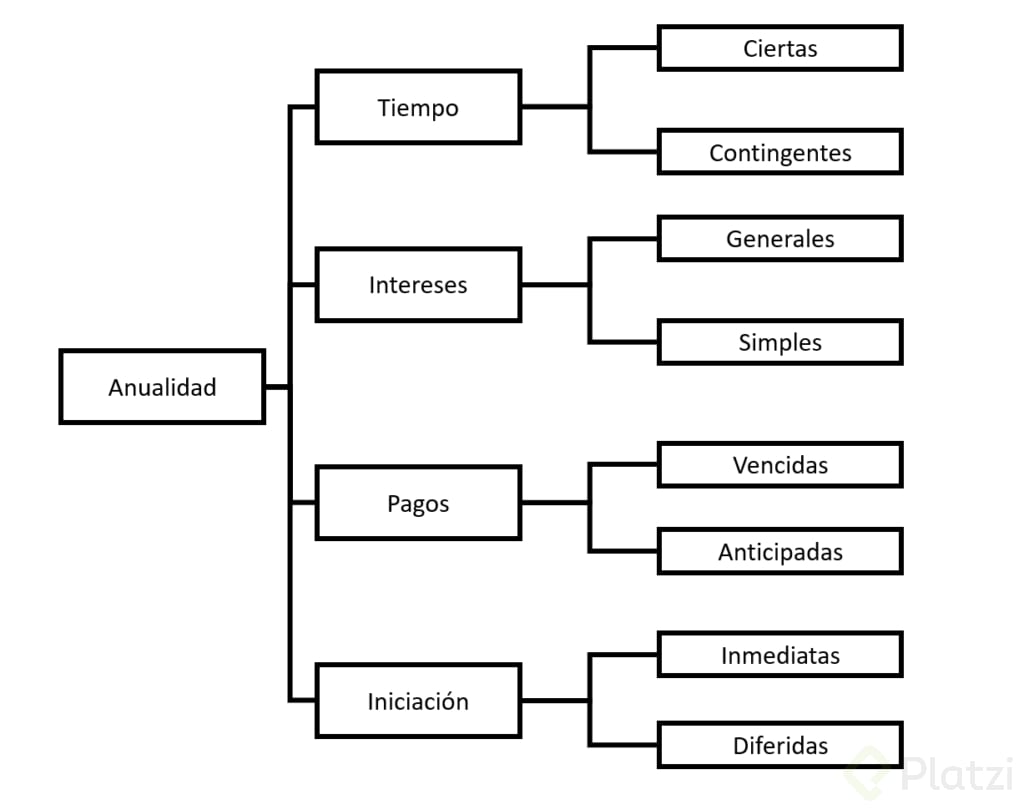 Anualidades simples y generales: En las simples, los periodos de pago y de interés coinciden, mientras que en las generales, pueden diferir, requiriendo ajustes para que ambos coincidan.