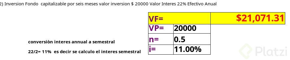 - Variable de interés: Identificar y convertir la tasa de interés en decimal. Por ejemplo, en este caso, un 2% de interés mensual.