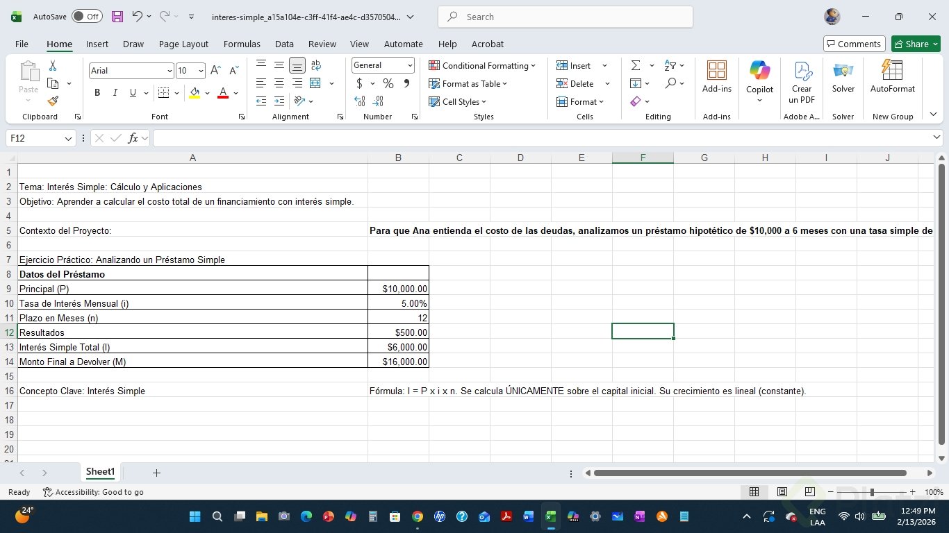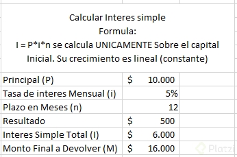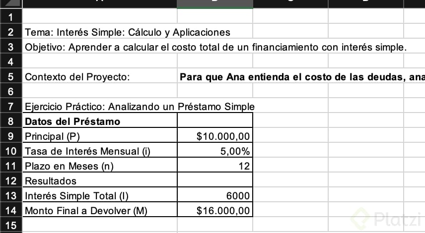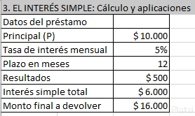 - Estimar el monto final sumando capital e intereses.