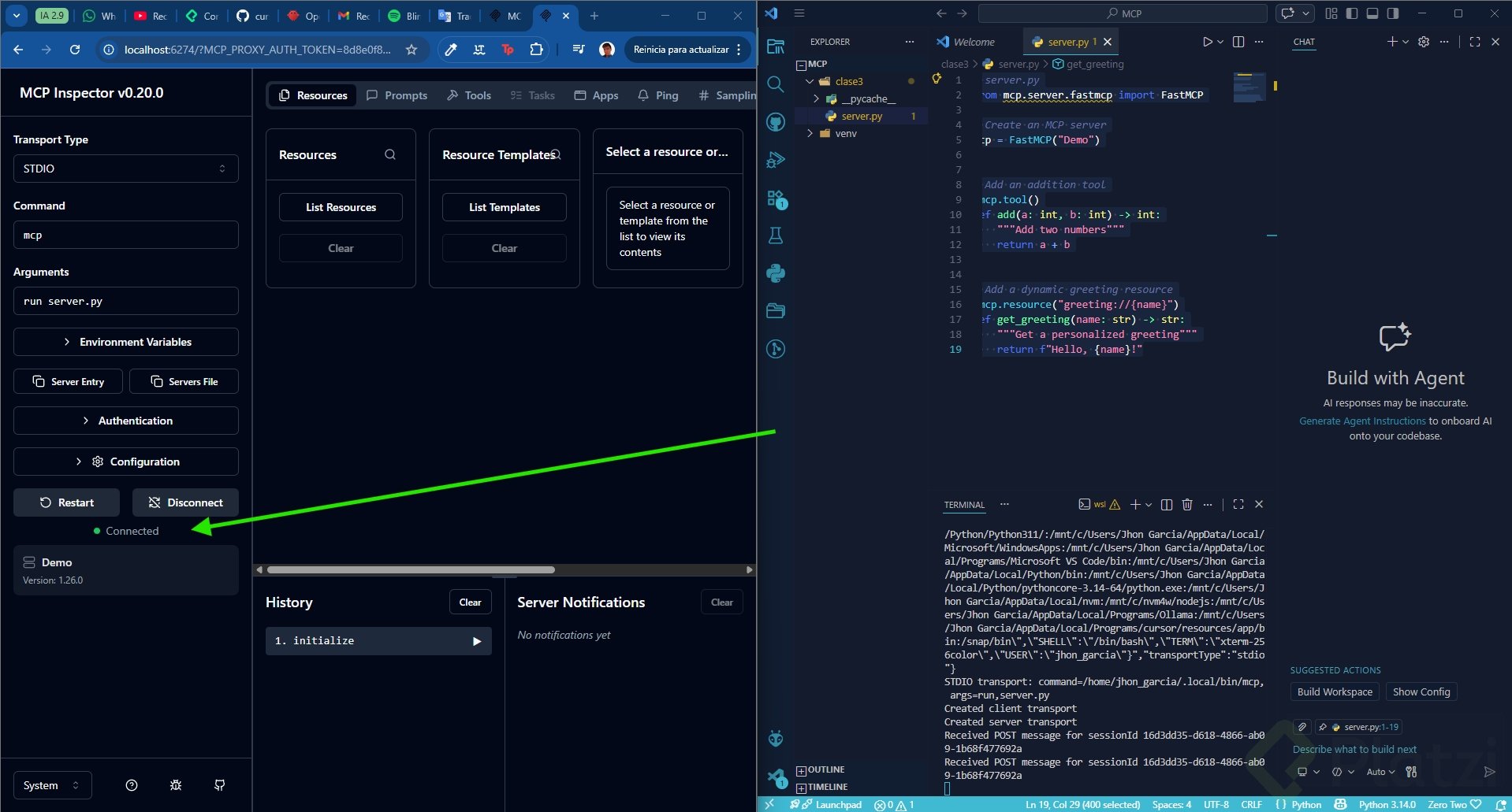 ¿Cómo usar el MCP Inspector para revisar recursos y herramientas?