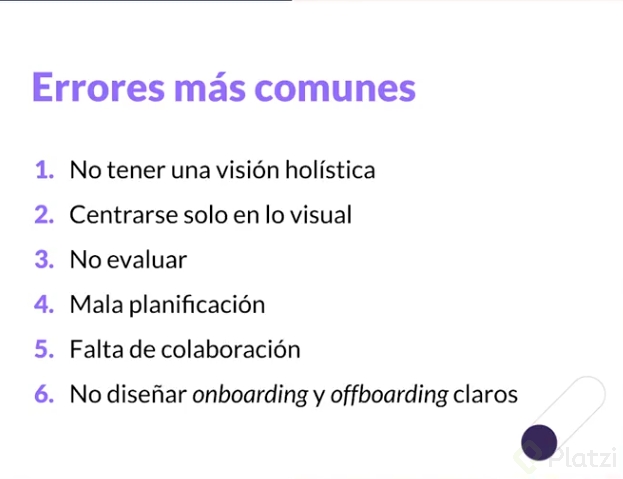 Finalmente, uno de los errores más perjudiciales es la falta de un onboarding y offboarding claros. El diseño debe ofrecer ayuda visual y guiar al usuario en cómo interactuar con el producto.