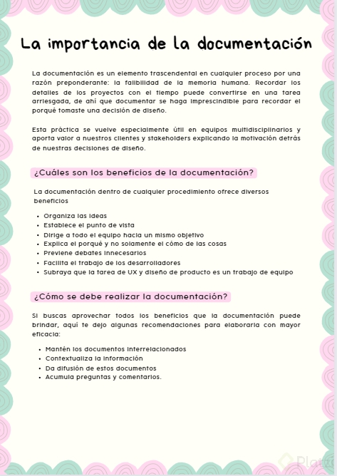 La documentación es un elemento trascendental en cualquier proceso por una razón preponderante: la falibilidad de la memoria humana. Recordar los detalles de los proyectos con el tiempo puede convertirse en una tarea arriesgada, de ahí que documentar se haga imprescindible para recordar el porqué tomaste una decisión de diseño.
