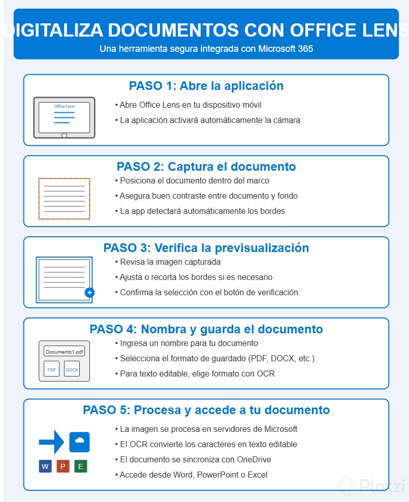 Hoy en día, las aplicaciones de digitalización de documentos han simplificado cómo gestionamos información escrita. Una destacada en este campo es Office Lens. Esta aplicación no solo es segura, sino que también se integra perfectamente con herramientas de Microsoft Office, como Word y PowerPoint. Por su eficiencia y seguridad, se convierte en una opción ideal para quienes usan estos programas con frecuencia. A continuación, exploraremos cómo sacarle el máximo provecho a esta herramienta digital.