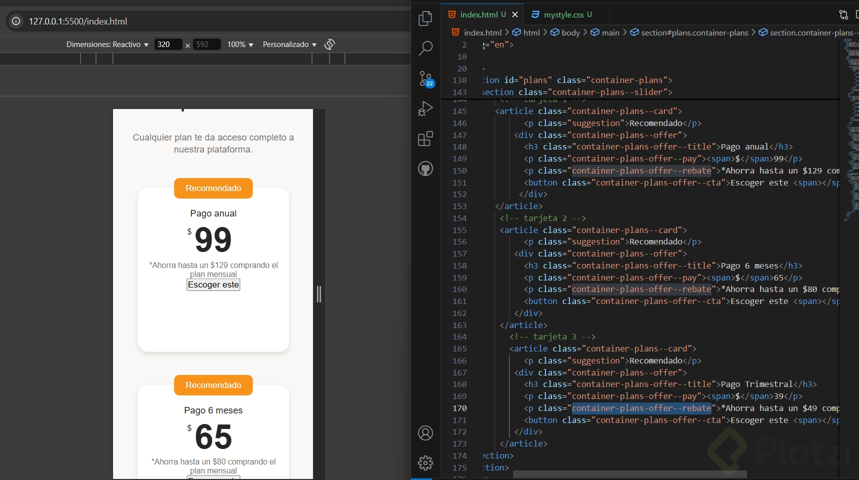 El siguiente paso para finalizar tu sección de planes es agregar estilos en las tarjetas. Vamos a nuestra hoja de estilos.