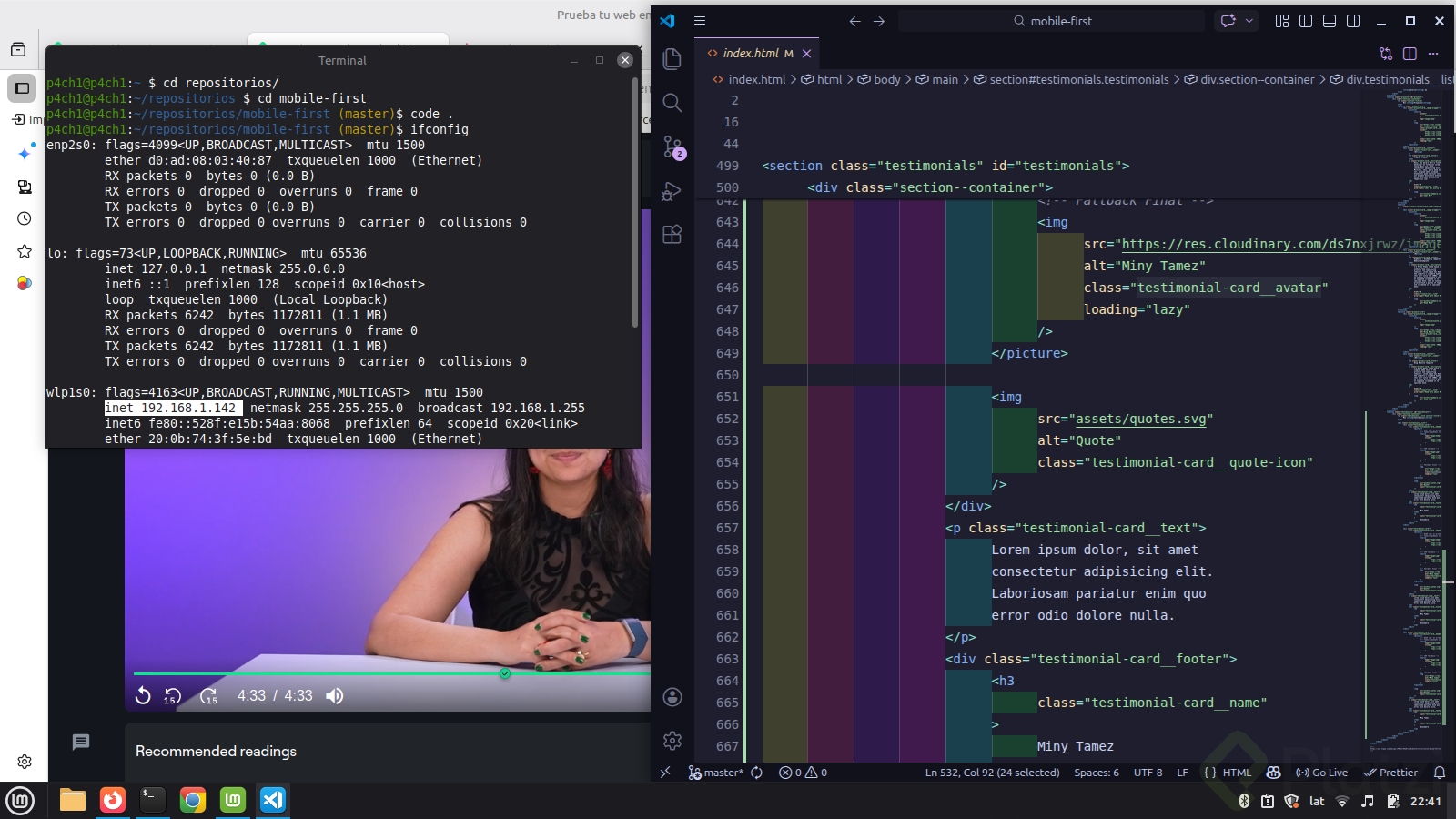 Cuando ejecutas tu servidor de desarrollo con Live Server (botón Go Live), el navegador suele abrir algo como 127.0.0.1:5501. 127.0.0.1 es la IP de tu máquina (tu localhost) y 5501 es el puerto que atiende el servidor. Esa dirección funciona en tu ordenador, pero no en el teléfono, porque el móvil no puede acceder a 127.0.0.1 del ordenador.