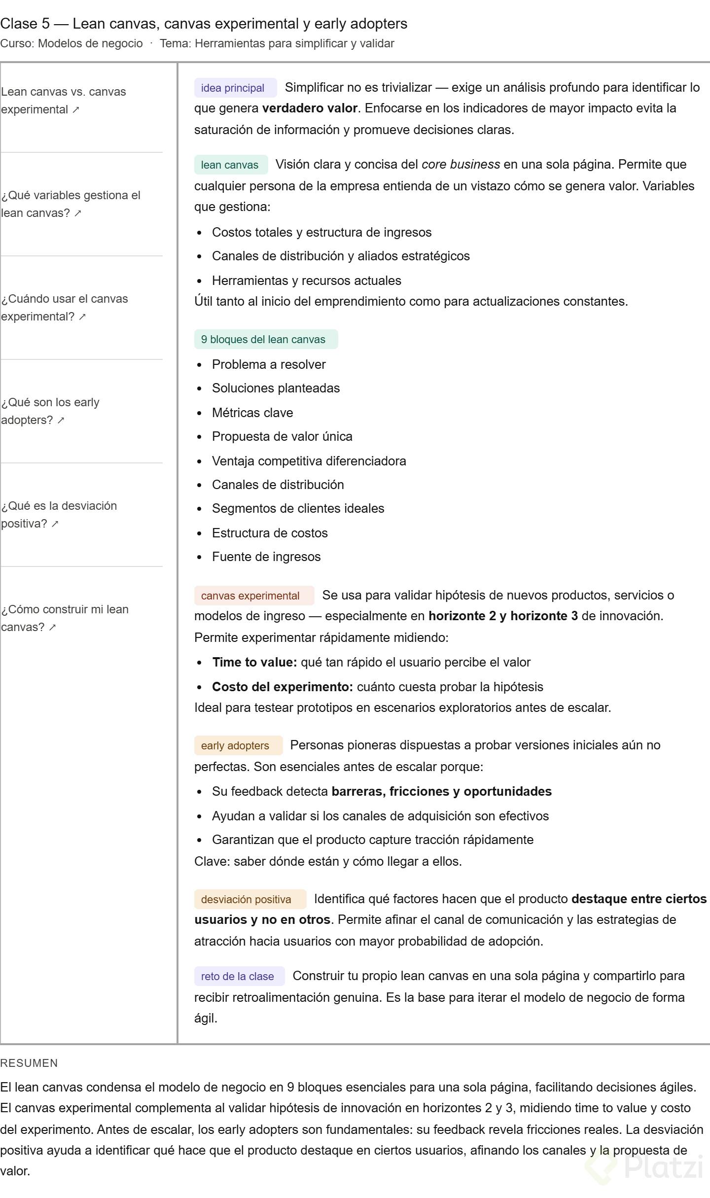 Ambas herramientas, aunque diferentes, buscan facilitar la comprensión y la gestión de los factores que afectan un modelo de negocio. El lean canvas ofrece una visión clara y concisa del core business, permitiendo que cualquier persona dentro de la empresa entienda de un vistazo cómo generar valor. Por otro lado, el canvas experimental permite probar, testear y validar nuevas ideas o vías de monetización, siendo ideal para escenarios de innovación donde se exploran productos, servicios o sistemas de precios alternativos.
