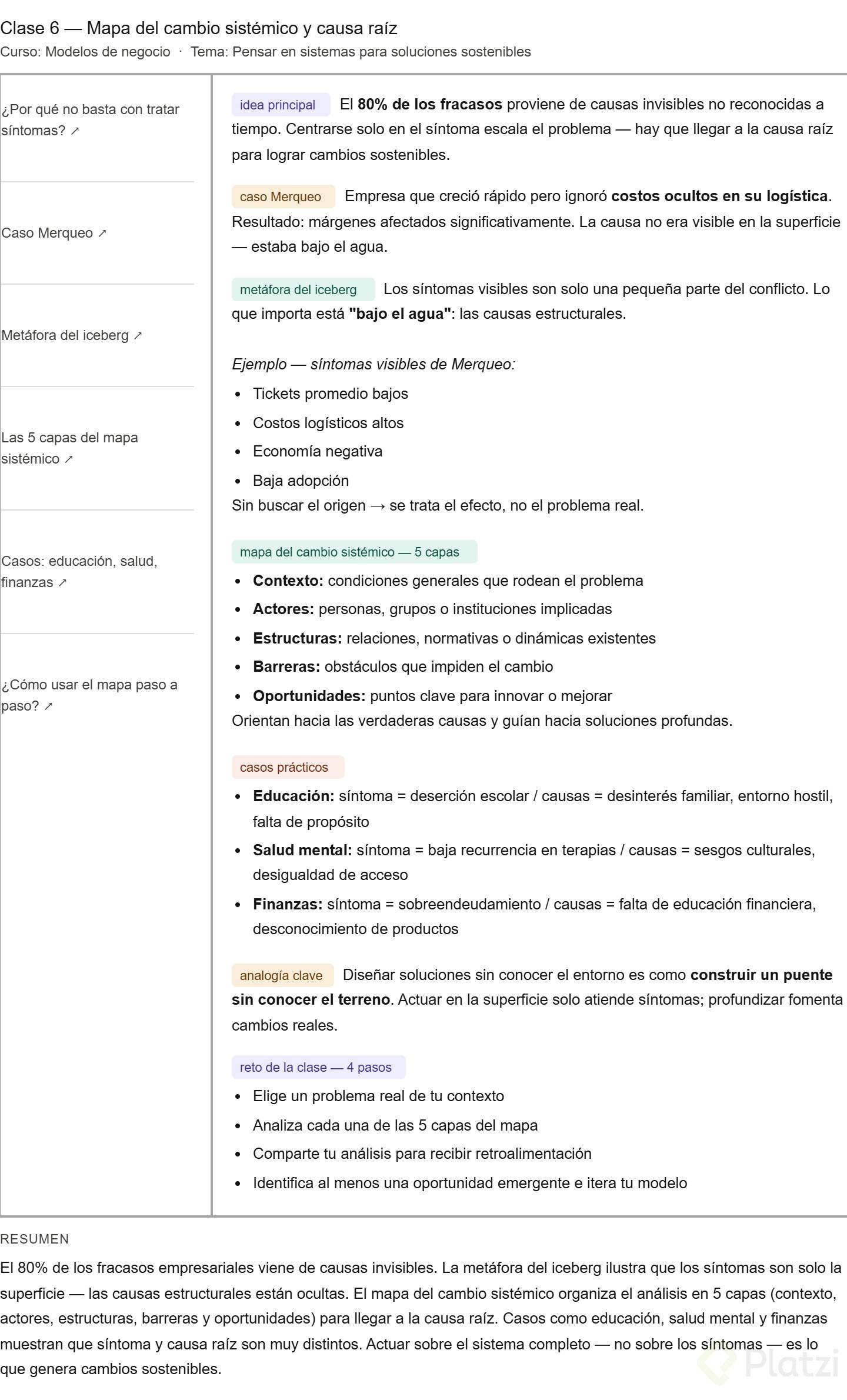 Comprender la raíz de los problemas es esencial para evitar soluciones superficiales y lograr cambios sostenibles. Aquí aprenderás a utilizar el mapa del cambio sistémico para explorar más allá de los síntomas y detectar causas profundas en modelos de negocio y sectores sociales.