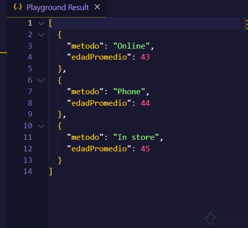 { $group: { _id: "$método", mediaEdad: { $avg: "$age" } } },