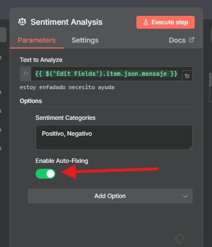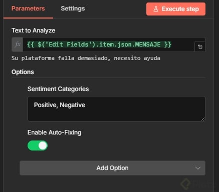 ¿Cómo se configura el análisis de sentimiento en N8N?