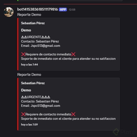 - Rama negativa: envía un aviso urgente por Slack al equipo de soporte.