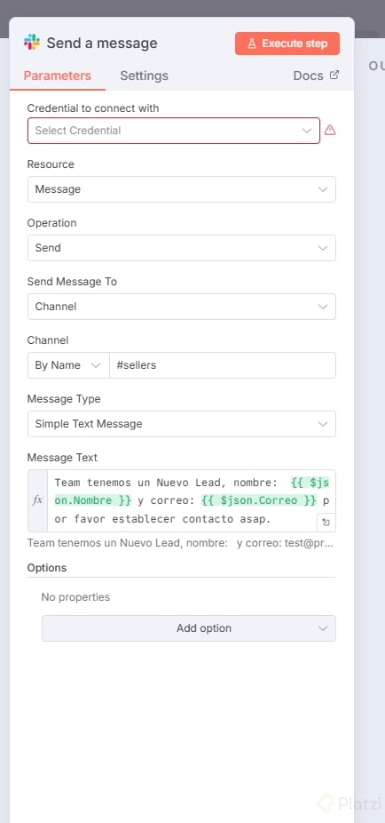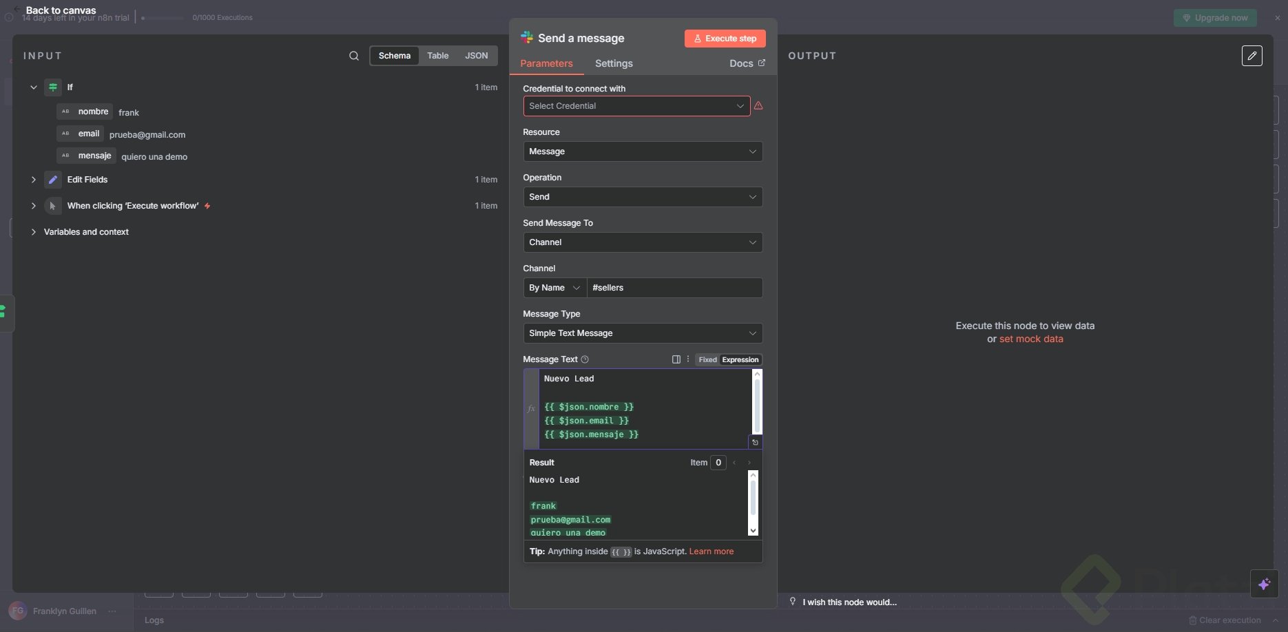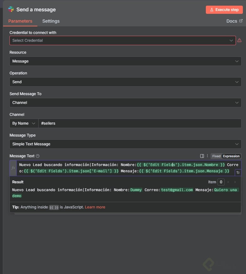 Idea para practicar: añade los datos de contacto (nombre y email) dentro del mensaje de Slack para que el equipo actúe rápido. Cuando lo tengas, sube una captura en los comentarios e indica cómo estructuraste el mensaje. ¿Tienes otra variante de filtro en el if? Compártela y cuéntanos qué canal usarías para distintos tipos de lead.