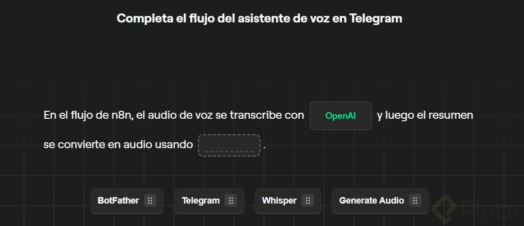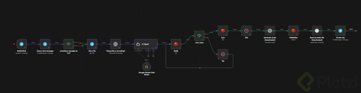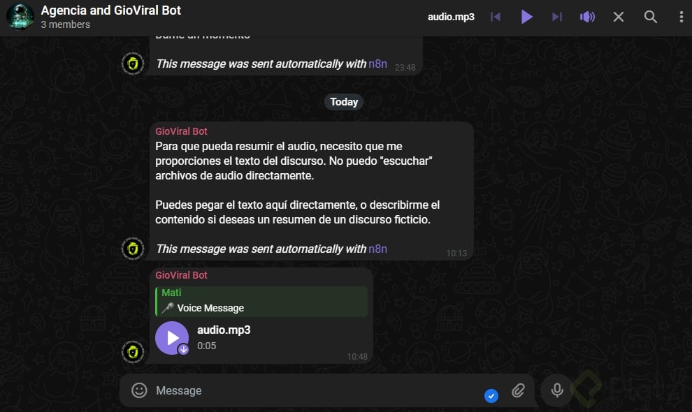 Tras descargar el binario del mensaje de voz, llega el turno de la transcripción, el resumen y la síntesis de voz para responder en el mismo chat.