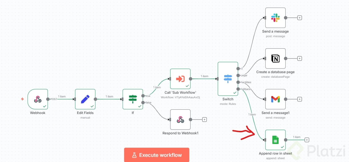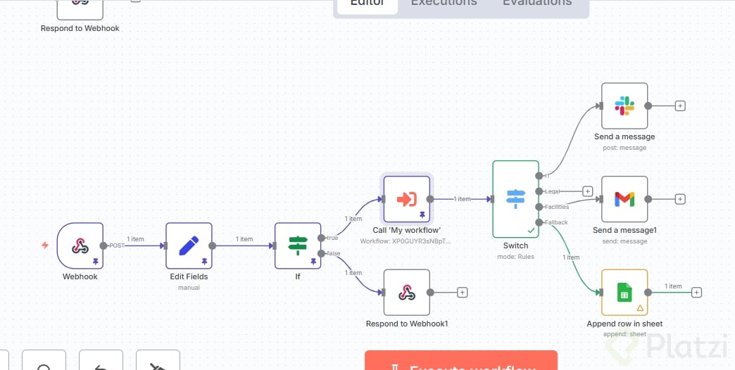 - Desconecta temporalmente el nodo de response to webhook para probar sin ruido.