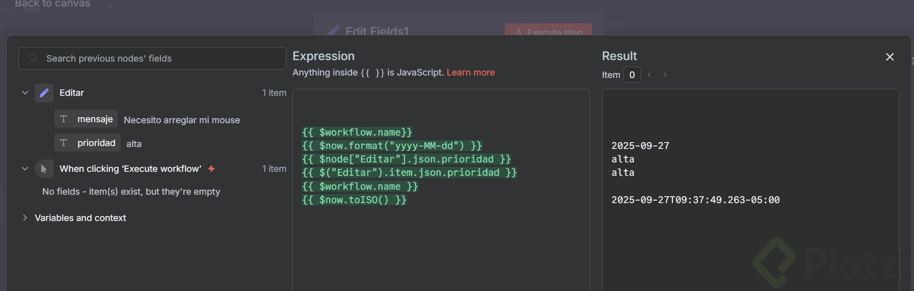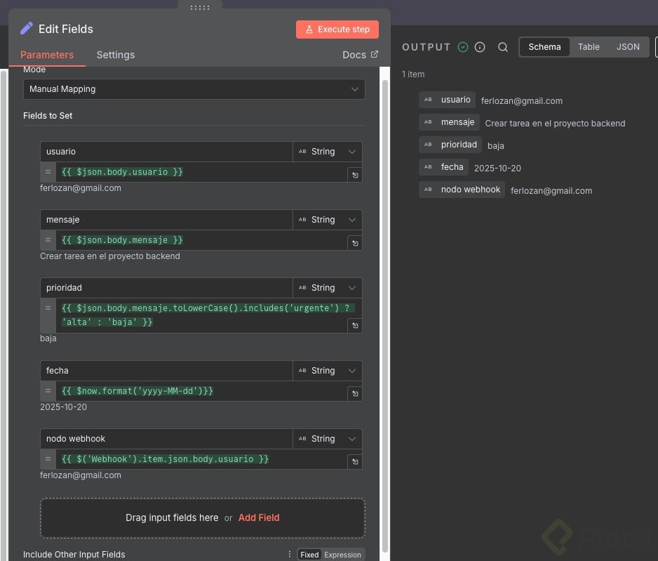 ¿Te animas a intentarlo? Haz una pequeña modificación con dos expresiones de sistema de n8n en el nodo set, toma una captura y compártela en los comentarios.