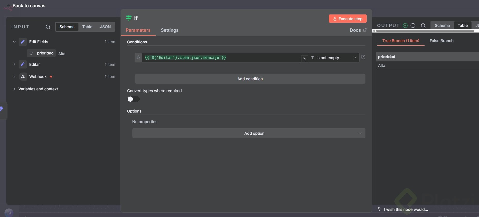 {{ $json.prioridad }}y{{ $node['Editar'].json.prioridad }}en el set. - Inserta un set intermedio que añada