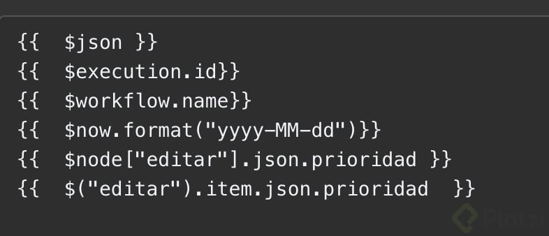- Acceder a datos del nodo con $json.