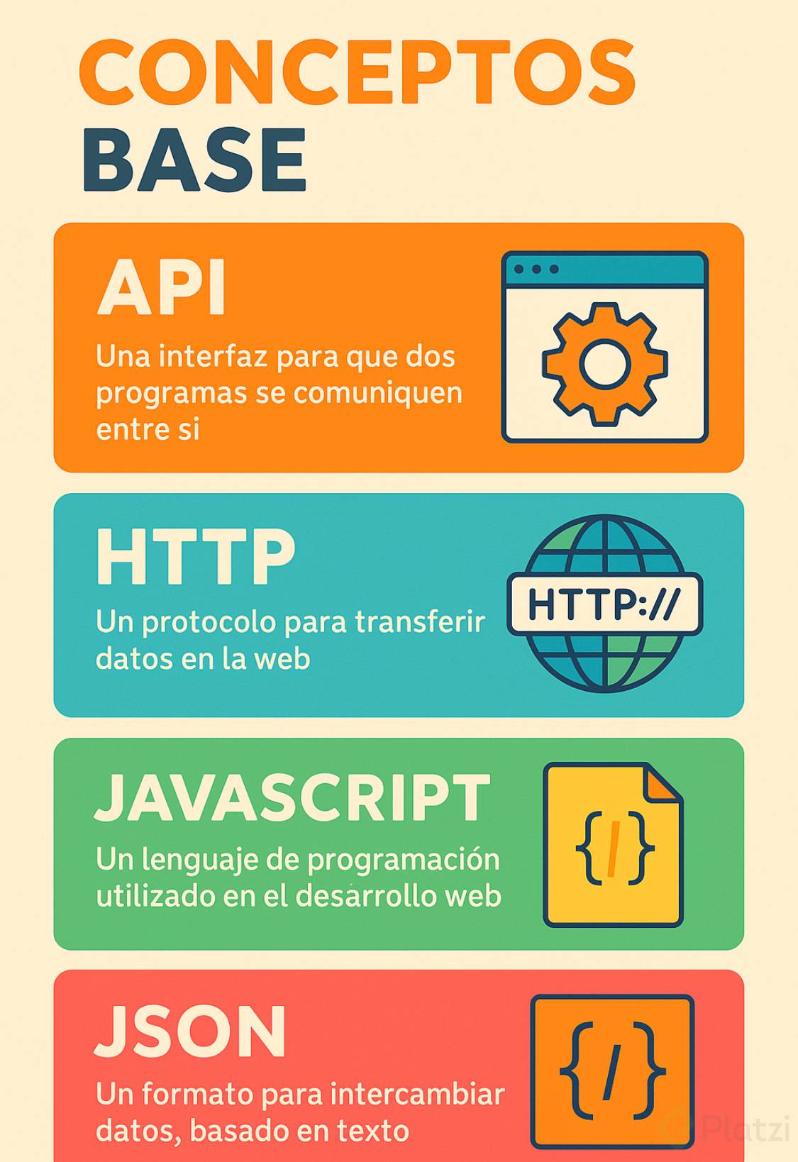 Conectaremos con servicios externos, por eso importa comprender la interfaz de una API y el protocolo HTTP. Ambos permiten que dos aplicaciones se comuniquen mediante peticiones que envían y reciben datos. Durante el curso se usarán los métodos GET y POST para ese intercambio.