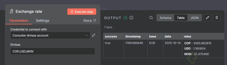 - Pruebas en n8n con workflow de trigger manual, creación de credenciales con Create new credential y ejecución con Execute step.